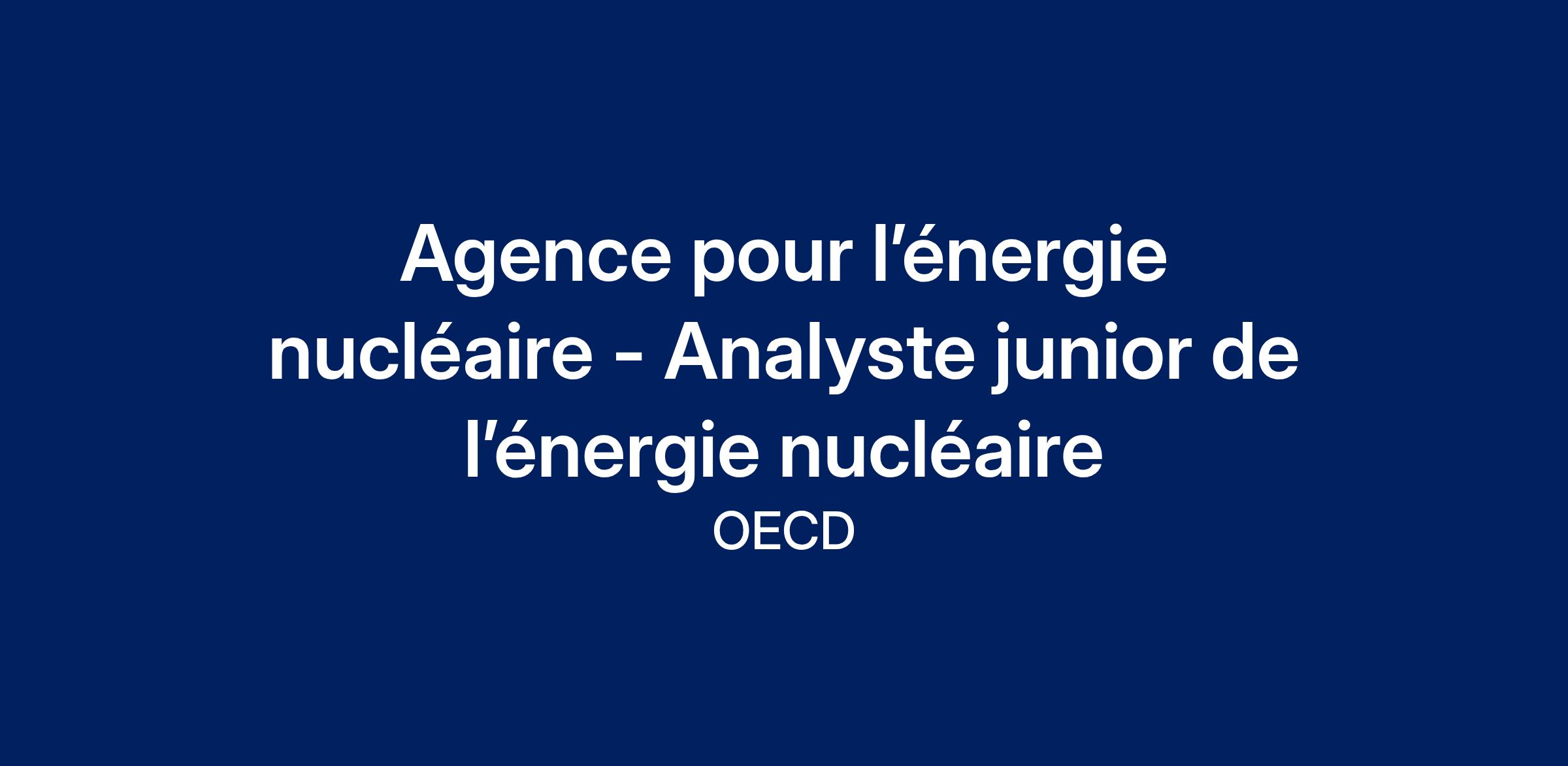 L’AEN/NTE recrute un(e) Analyste junior de l’énergie nucléaire pour travailler principalement sur des initiatives stratégiques, dans le cadre des activités menées avec les pays membres dans des domaines tels que le financement du nucléaire, le développement des compétences et la chaîne d’approvisionnement. La personne retenue exercera ses fonctions sous la supervision du chef de l’équipe NTE au sein de la division concernée.