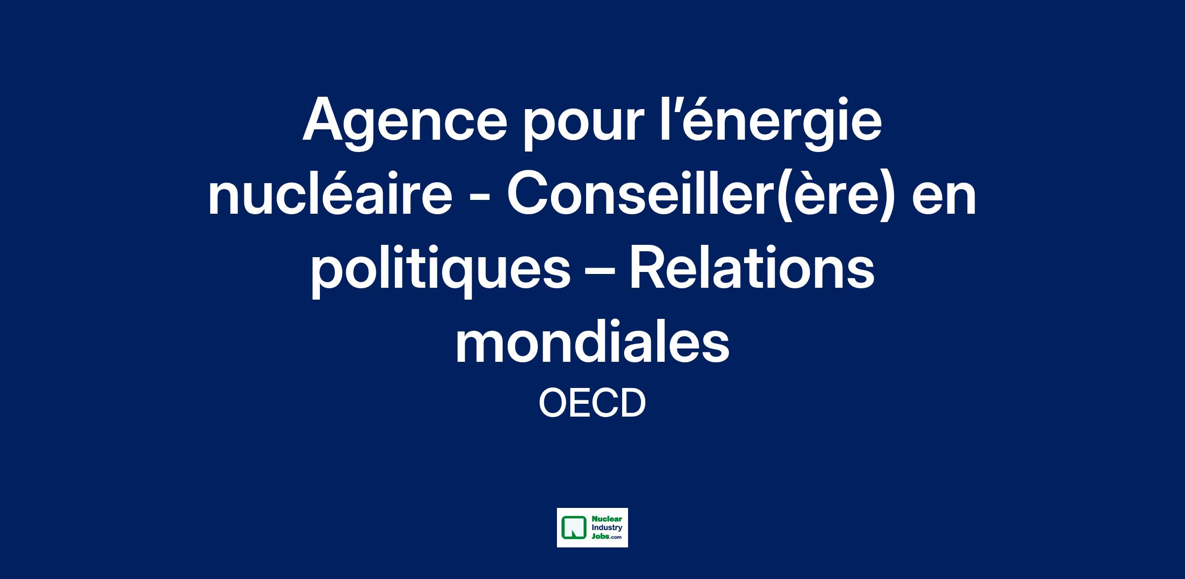 L'AEN recherche un(e) conseiller(ère) en politiques – Relations mondiales disposant d’une expérience avérée des relations internationales pour travailler au sein du Bureau de la stratégie et de la coordination de l’AEN. Il/Elle participera à la coordination de diverses initiatives et projets de l’AEN, ainsi que d’activités conjointes avec différents gouvernements concernant des initiatives relatives aux politiques d’énergie nucléaire et de développement durable. Il/elle produira des analyses des politiques et fournira des conseils sur les relations bilatérales avec les États membres et d’autres parties prenantes en vue de mettre en œuvre le Programme de travail de l’AEN. Il/elle élaborera des documents et des bonnes pratiques pour faciliter la prise de décisions stratégiques via des documents écrits de haute qualité, des conseils et de la diplomatie. Il/elle fera partie d’une équipe qui contribue à l’expertise et au leadership intellectuels de l’AEN. Le/la candidat(e) retenu(e) rendra compte directement au Chef du Bureau de la Stratégie et de la coordination.
