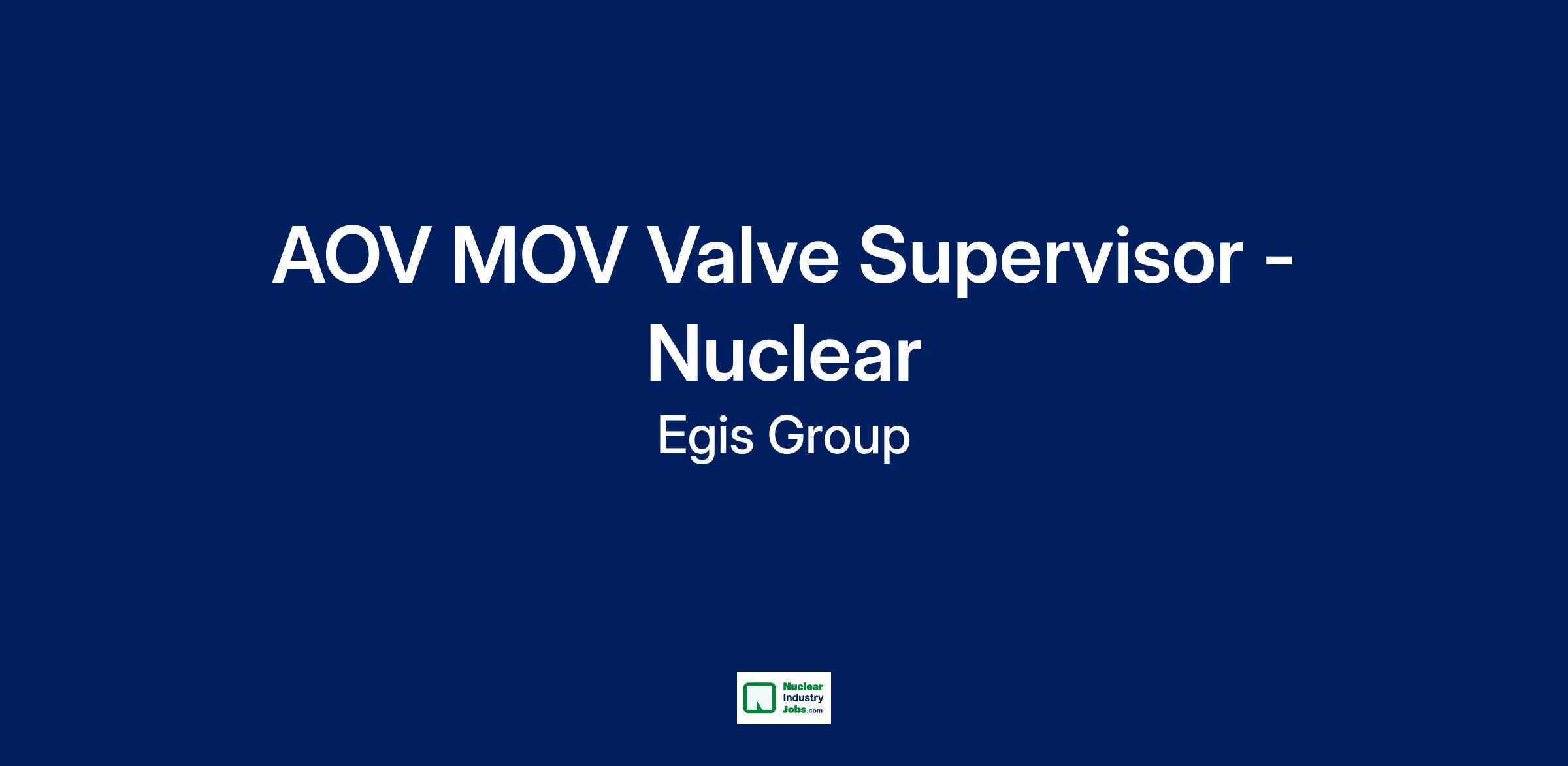AOV/MOV Valve Supervisor will develop and coordinate system work windows such as turbine/generator, feed water and other equipment to ensure safe and timely execution of refueling outages at Nuclear Power Plant. The activity includes all aspects of preparation, planning, coordination, execution, and closeout of assigned system windows.