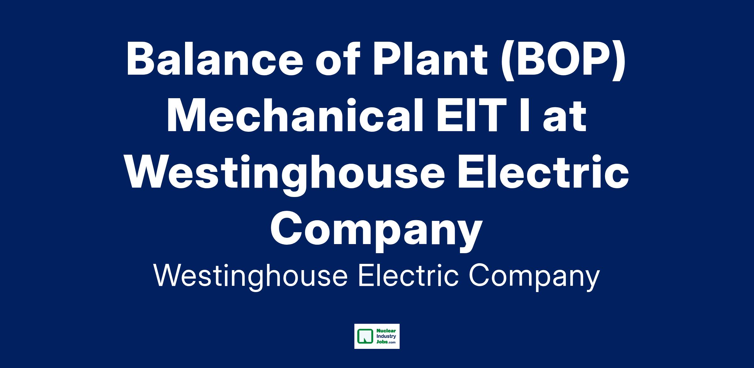 As a Balance of Plant (BOP) Mechanical EIT I you will work with a multi-discipline team of engineers in the design, analysis, and evaluation of systems using engineering software, including support to more senior engineers.