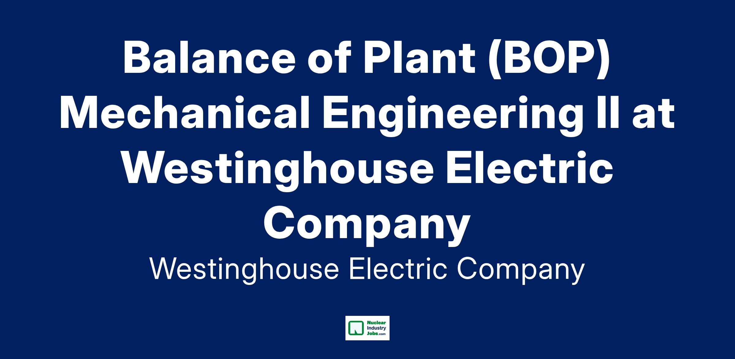 As a Balance of Plant (BOP) Mechanical EIT II you will work with a multi-discipline team of engineers in the design, analysis, and evaluation of systems using engineering software, including support to more senior engineers.