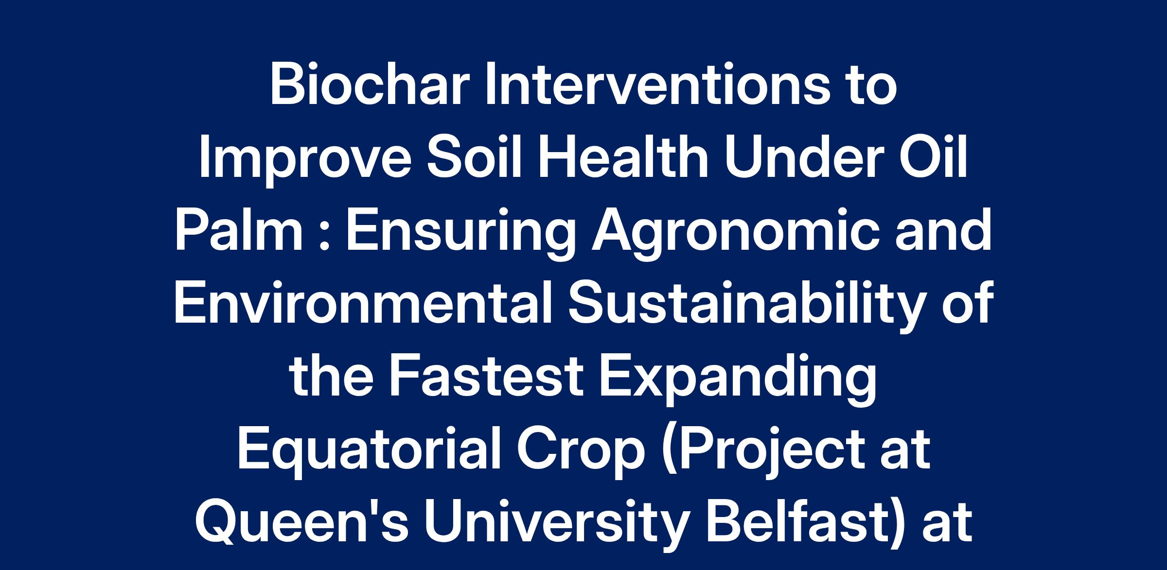 Biochar Interventions to Improve Soil Health Under Oil Palm : Ensuring Agronomic and Environmental Sustainability of the Fastest Expanding Equatorial Crop (Project at Queen's University Belfast) at University of Reading