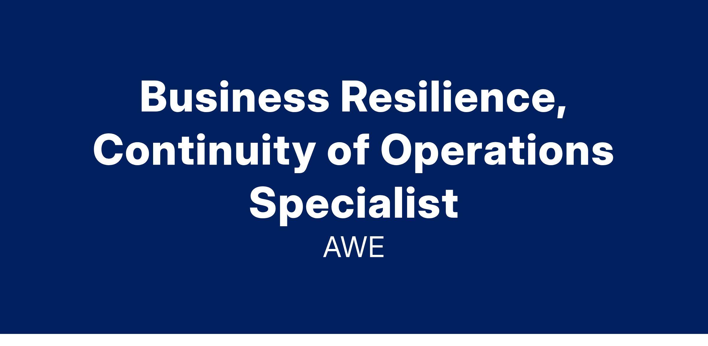AWE is currently recruiting for a Business Resilience and Continuity of Operations Specialist.