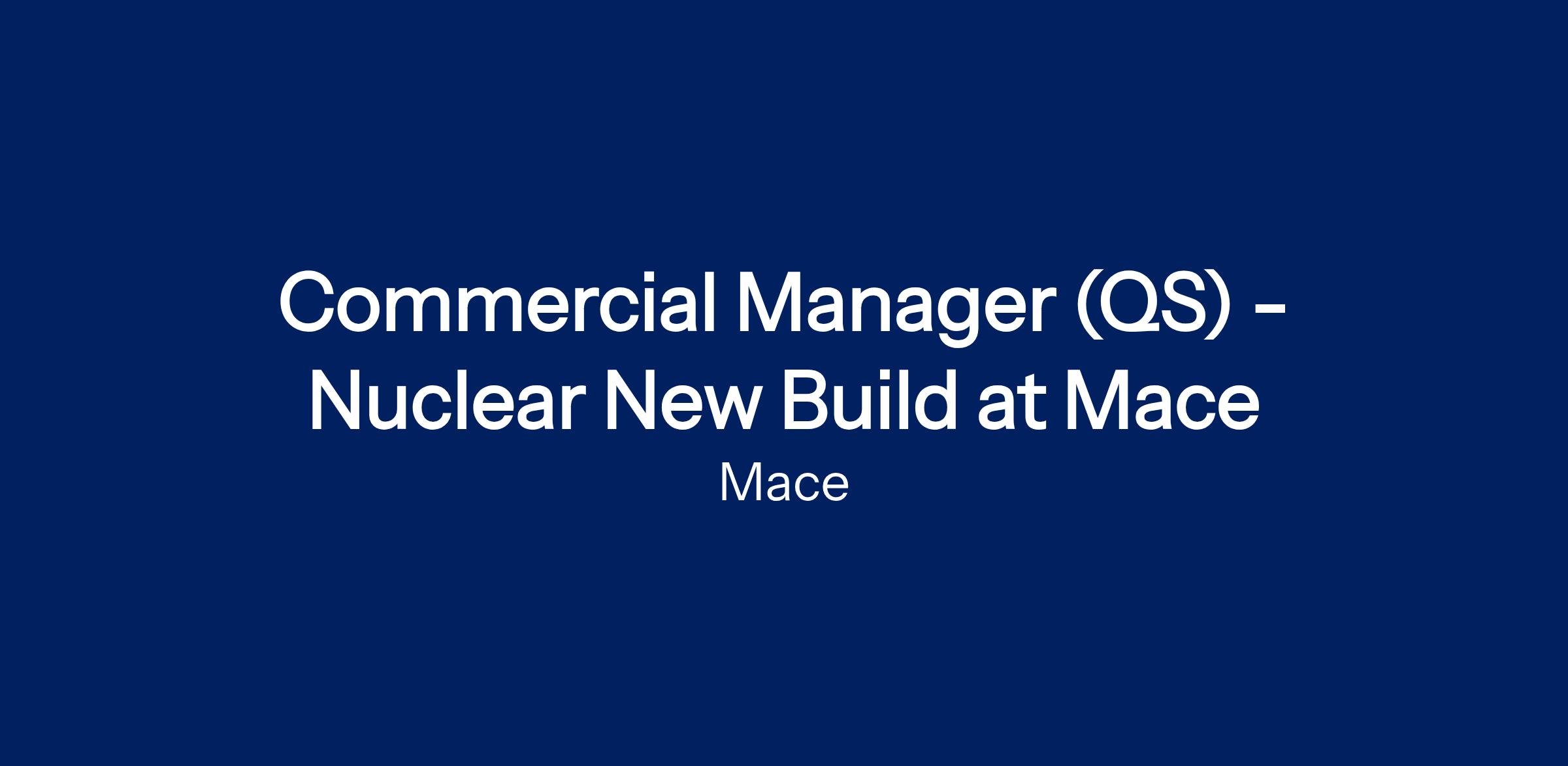 Commercial Manager (QS) - Nuclear New Build at Mace
