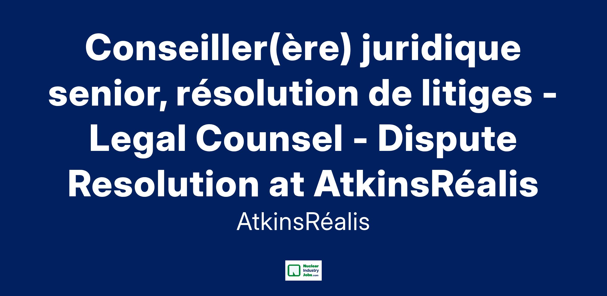 AtkinsRéalis Legal Department is seeking a Senior Legal Counsel to join its Center of Excellence for dispute resolution. This position will report to the Senior Director, Dispute Resolution Americas and Integrity.