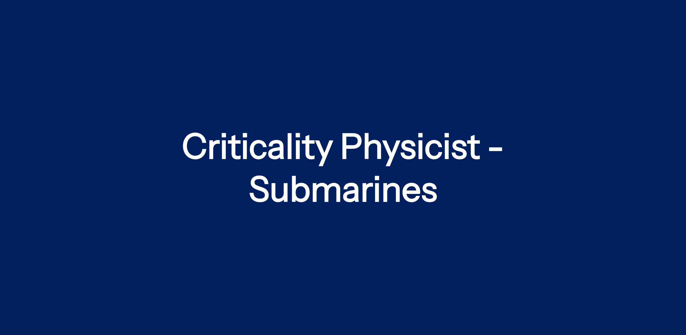 Job Title: Criticality Physicist - Submarines