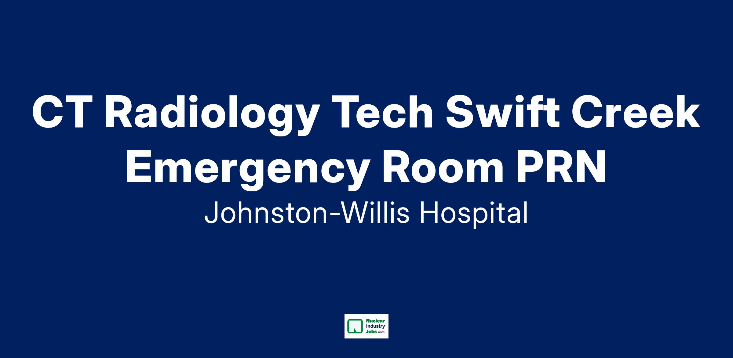 Do you have the PRN career opportunities as a(an) CT Radiology Tech Swift Creek Emergency Room PRN you want with your current employer? We have an exciting opportunity for you to join Johnston-Willis Hospital which is part of the nation's leading provider of healthcare services, HCA Healthcare.