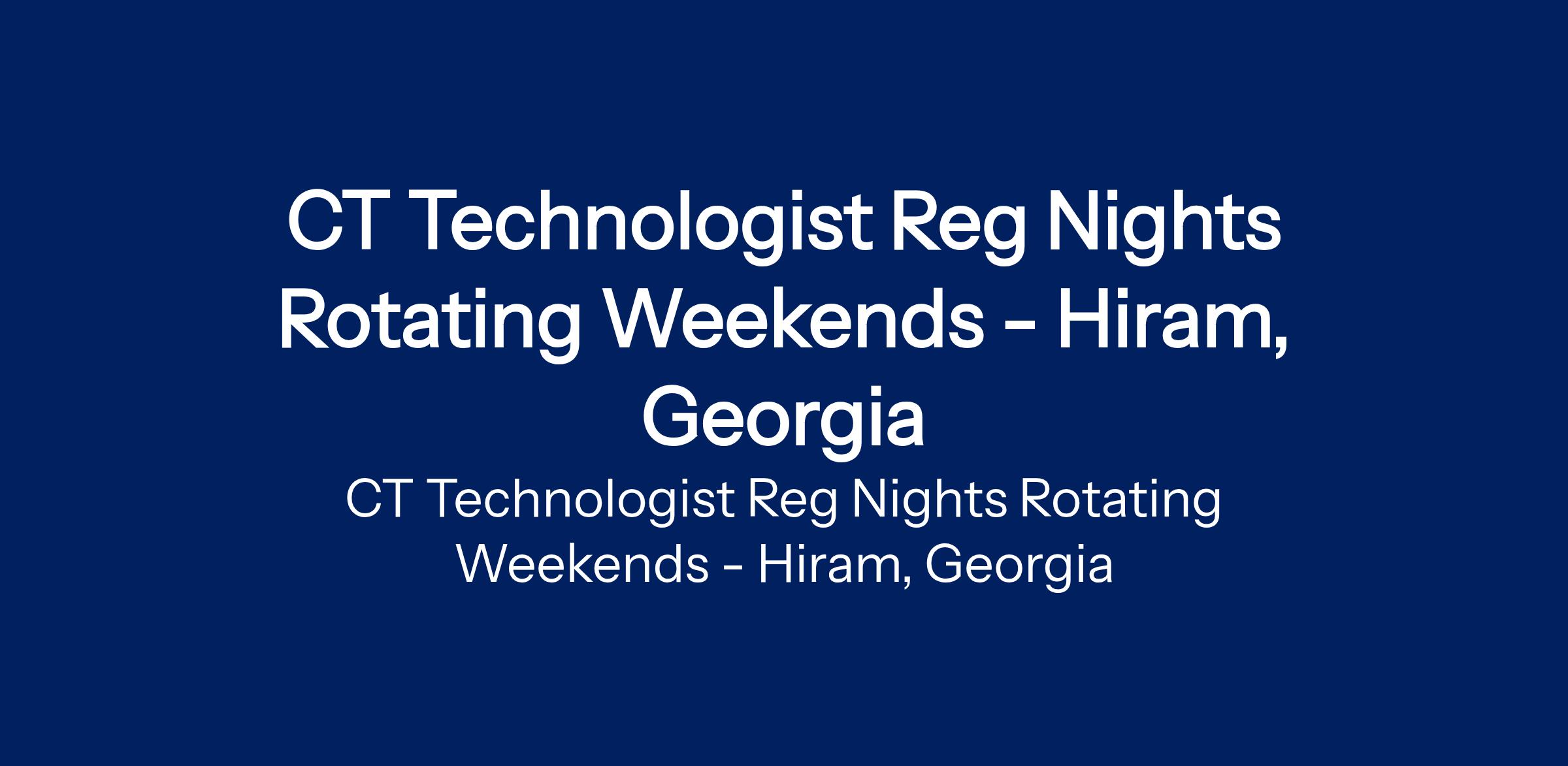 CT Technologist Reg Nights Rotating Weekends - Hiram, Georgia