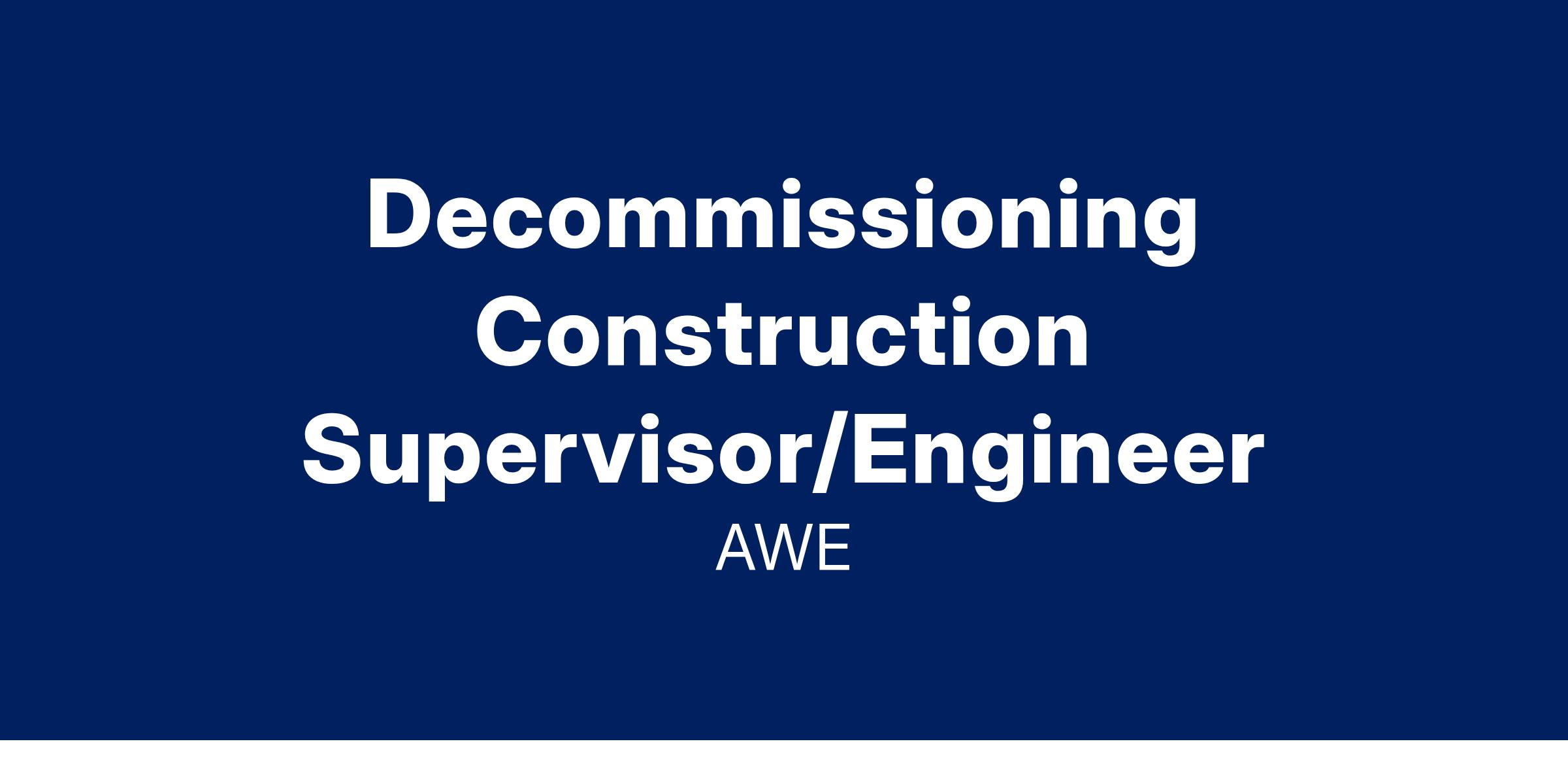 AWE is currently recruiting for a Client Decommissioning Construction Supervisor/Engineer to be responsible for supporting the Construction Manager in ensuring the successful planning and delivery phases of decommissioning construction projects.