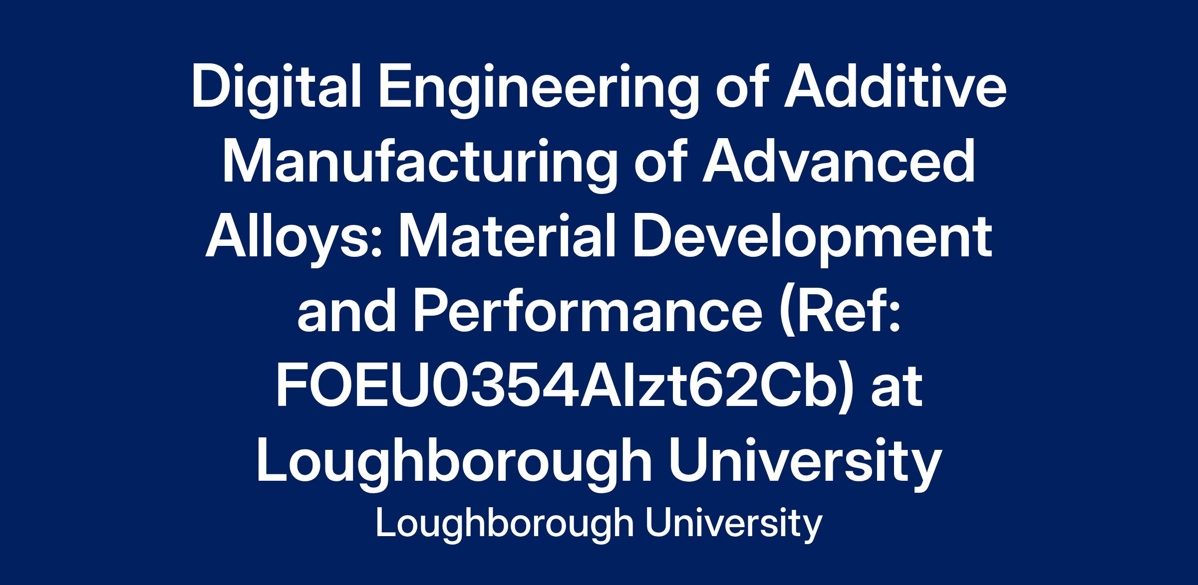 The Advanced Materials Processing Laboratory (AMPLab) at Loughborough University is seeking an exceptional and motivated PhD candidate (self-funded applicants only) to join our cutting-edge research on 'Digital Engineering of Additive Manufacturing (AM) of Advanced Alloys'. This speculative opportunity is aimed at students with strong interests in metallurgy, computational modelling, and advanced manufacturing, and who wish to shape the future of sustainable and high-performance metal processing.