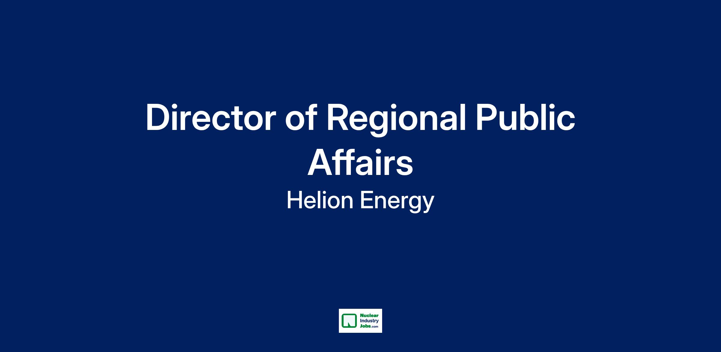 We're looking for a Regional Director of Public Affairs to join our Public Affairs Team. The Public Affairs Director will lead Helion's policy and engagement strategies for the Pacific Northwest. This role will build relationships with policymakers, Tribal governments, regulators, labor and community leaders across the Pacific Northwest to advance next-generation clean energy projects through commercial fusion power delivered at scale.