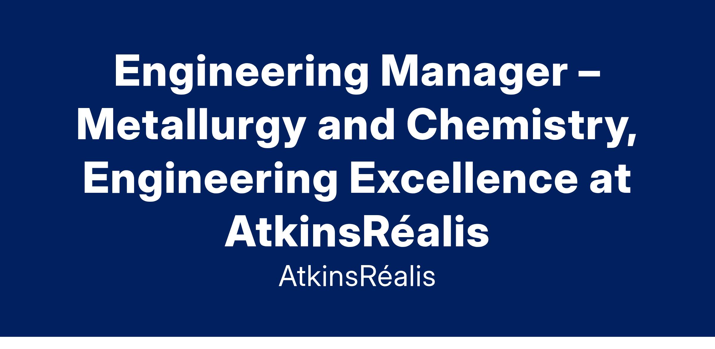 Engineering Manager – Metallurgy and Chemistry, Engineering Excellence