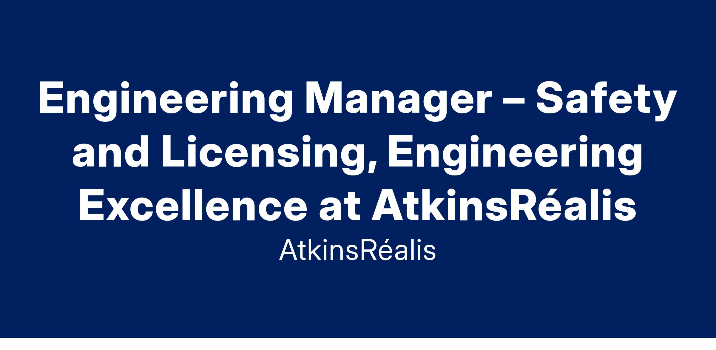 Engineering Manager – Safety and Licensing, Engineering Excellence