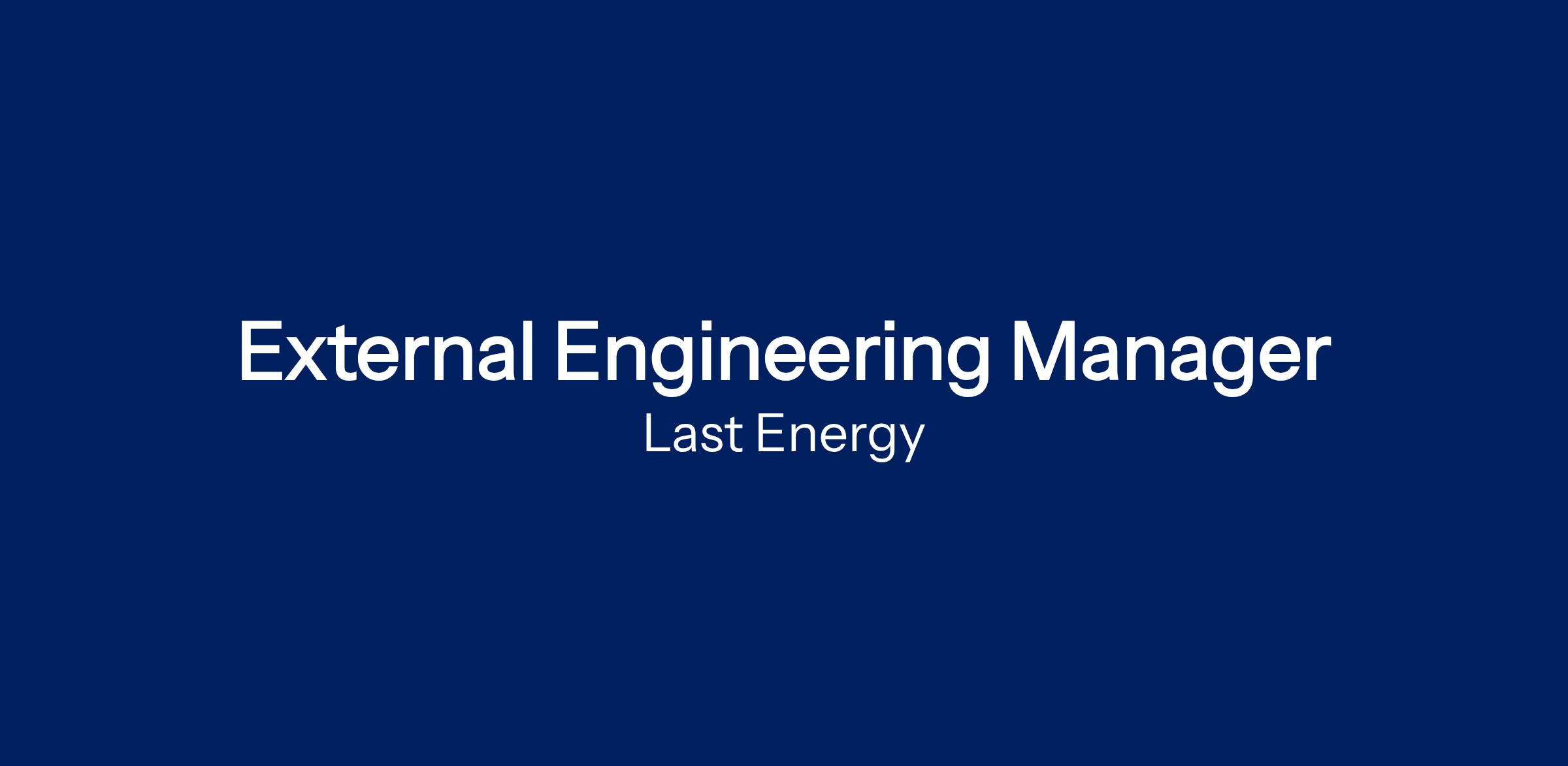 Last Energy is seeking an External Engineering Manager to lead and coordinate strategic partnerships with external engineering consulting firms, technical specialists, and third-party service providers.