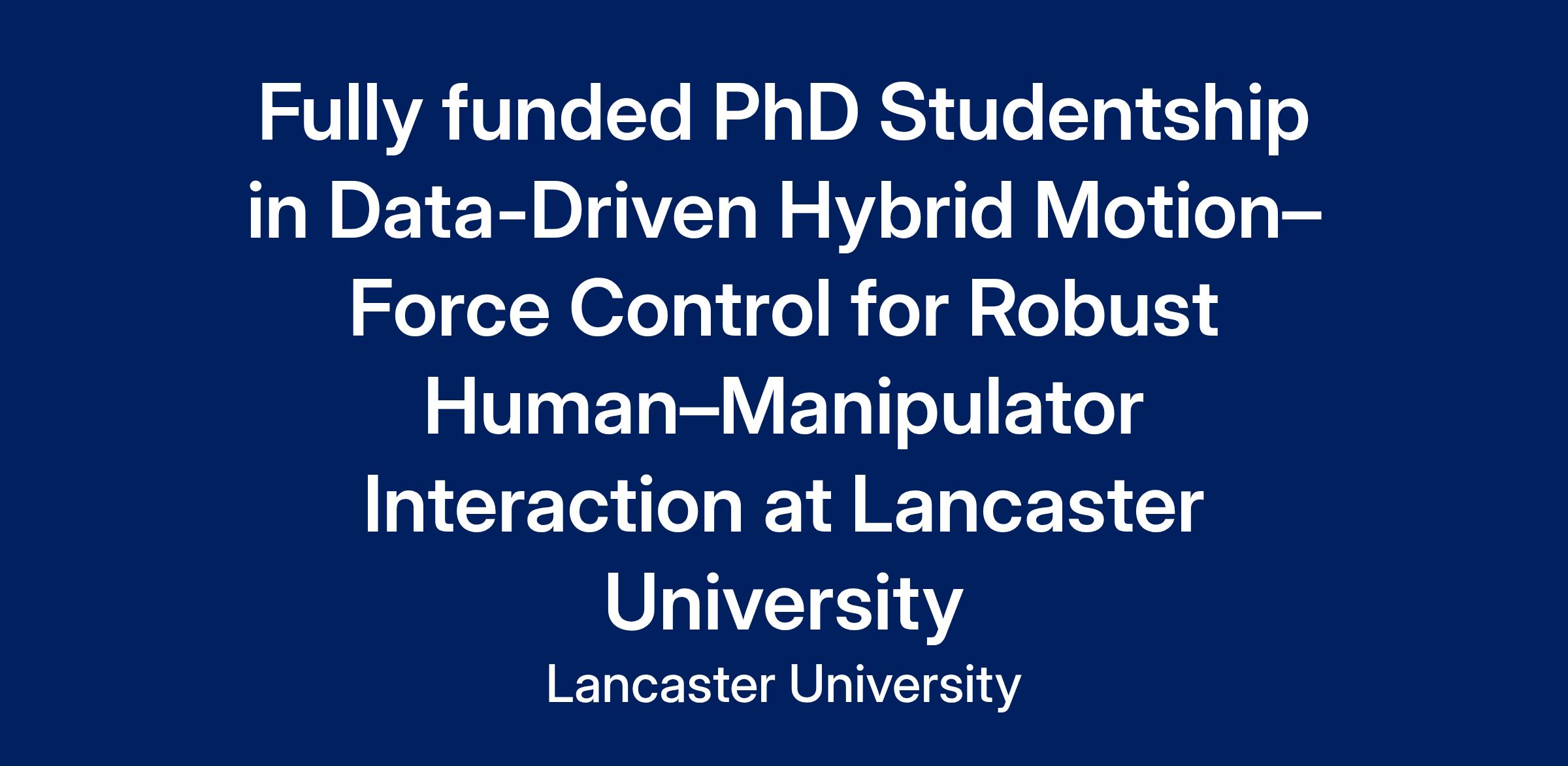 We invite applications for a fully funded PhD studentship at Lancaster University’s School of Engineering, in partnership with United Kingdom National Nuclear Laboratory (UKNNL). This exciting project will develop novel data-driven, robust, and adaptive control methods for human–robot interaction and teleoperation, with direct applications in nuclear robotics, hazardous environment manipulation, and beyond.