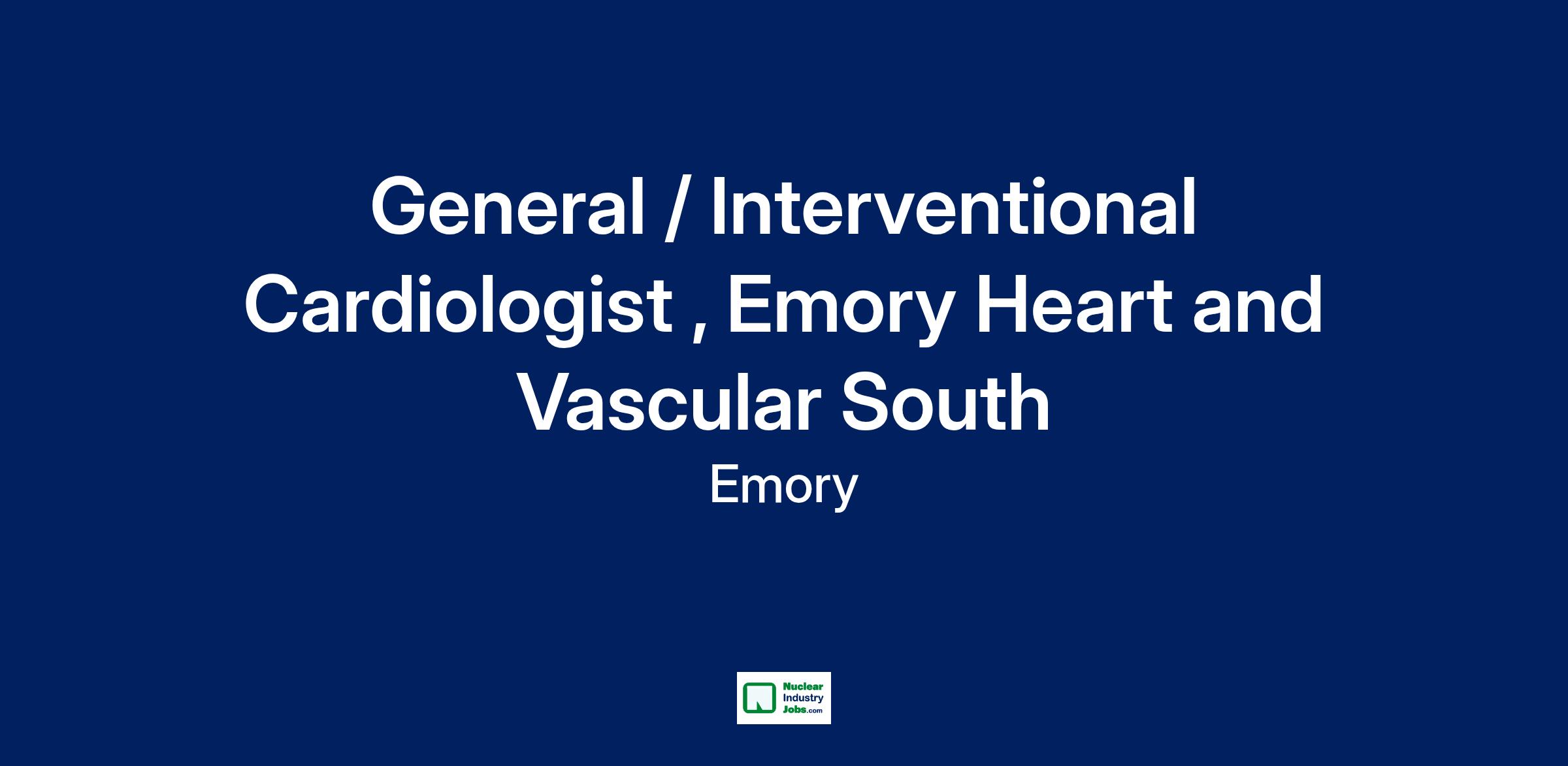 Emory Heart & Vascular is seeking a full-time Board Certified or Board Eligible Board Certified/Board Eligible Interventional Cardiologist/ General Cardiologist to join its expanding cardiology team minutes from the airport in South Atlanta.