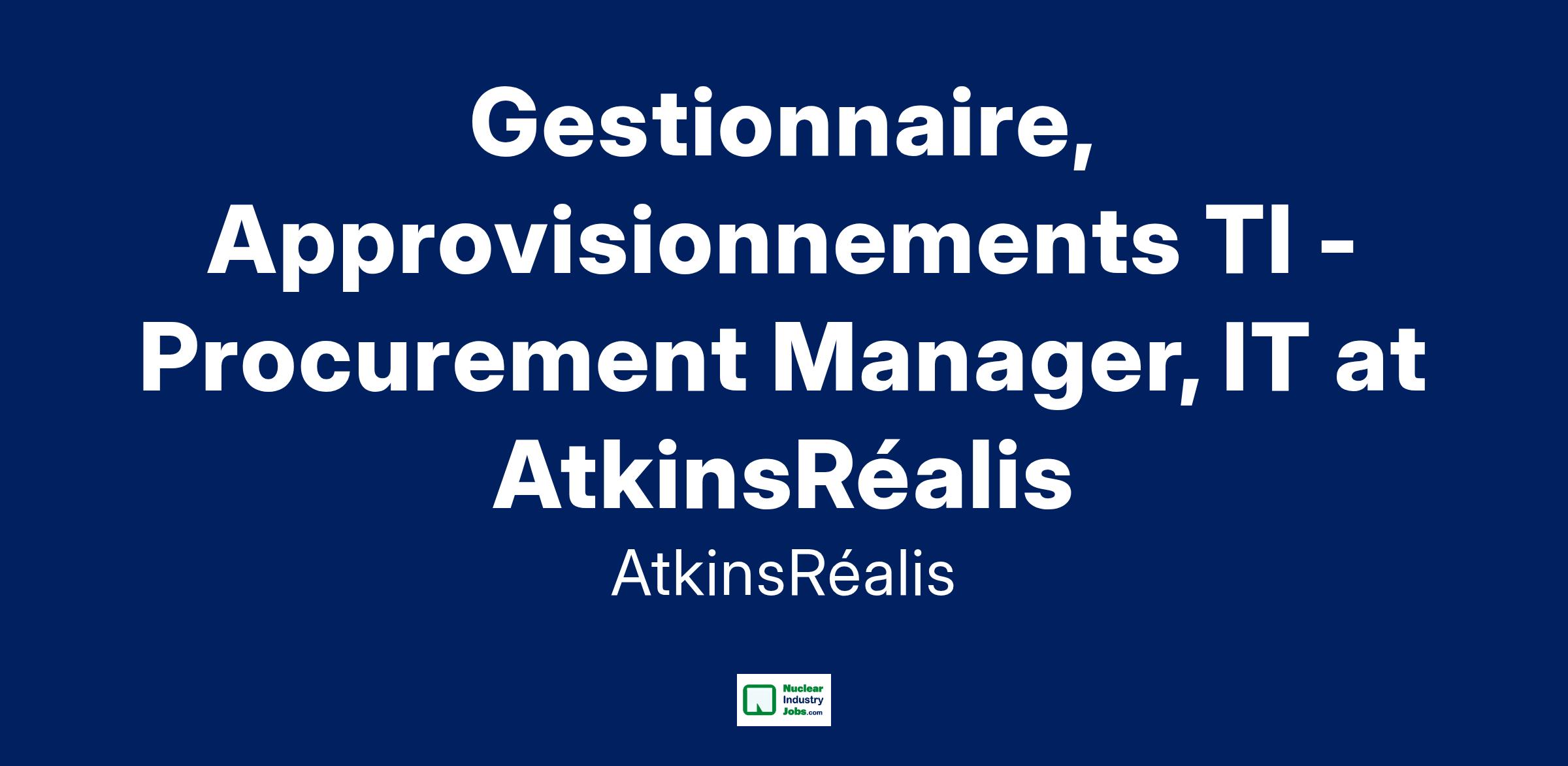 We are seeking a Procurement Manager to join our growing procurement team. This role will be instrumental in driving cost reductions and value across AtkinsRéalis. The successful candidate will be responsible for developing, implementing and maintaining contracting and commercial arrangements for a diverse portfolio of IT contracts, spend ranging from low to high value. This role involves performing the full spectrum of procurement and contracting activities, including pre-qualification, tender management, negotiation and contract preparation. Providing strategic procurement advice is also a key aspect of this role.