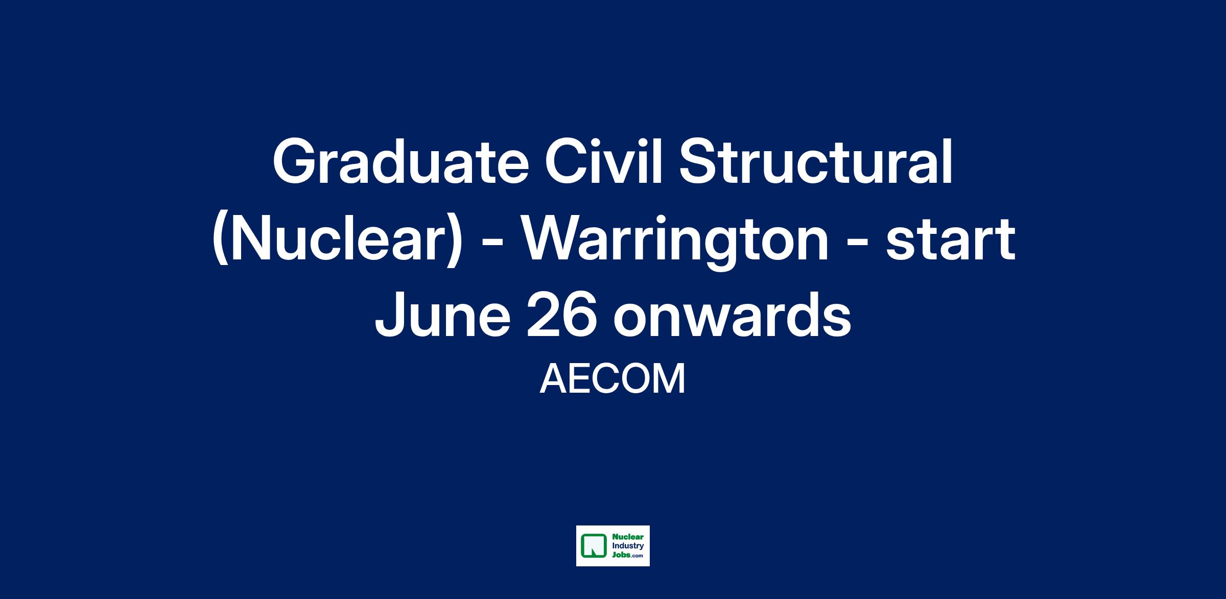 Due to the continued growth and expansion of our Nuclear Team in our Warrington office we are looking to increase our technical workforce and are seeking to recruit a Graduate Civil-Structural Engineer from June 26 onwards.