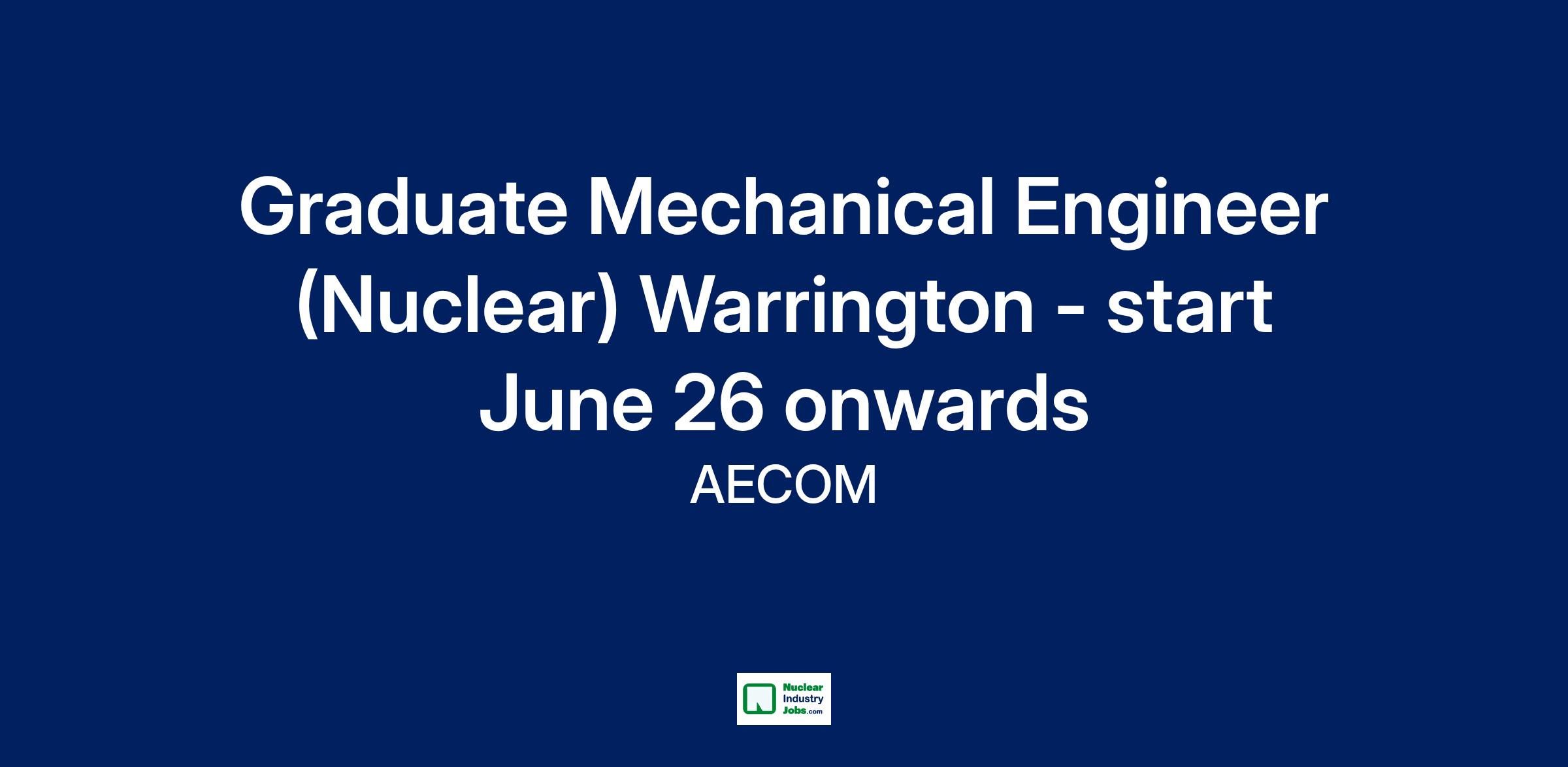 Due to the continued growth and expansion of our Nuclear Team in Warrington, we are looking to increase our technical workforce and are seeking to recruit a Graduate Mechanical Engineer to join our team from June 2026 onwards.