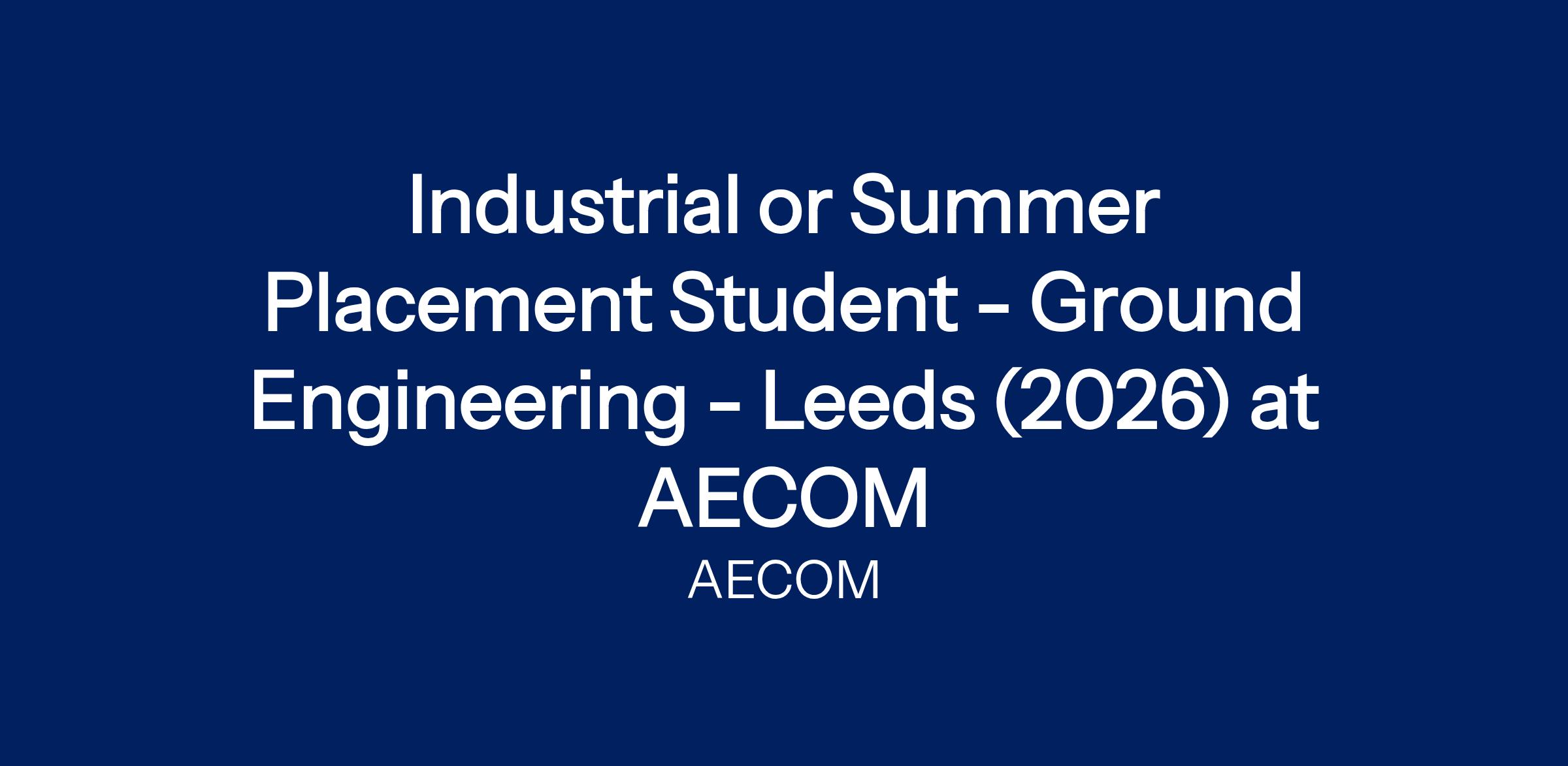 As a Ground Engineering intern at AECOM, you will contribute to a variety of projects, gaining hands-on experience in activities such as: