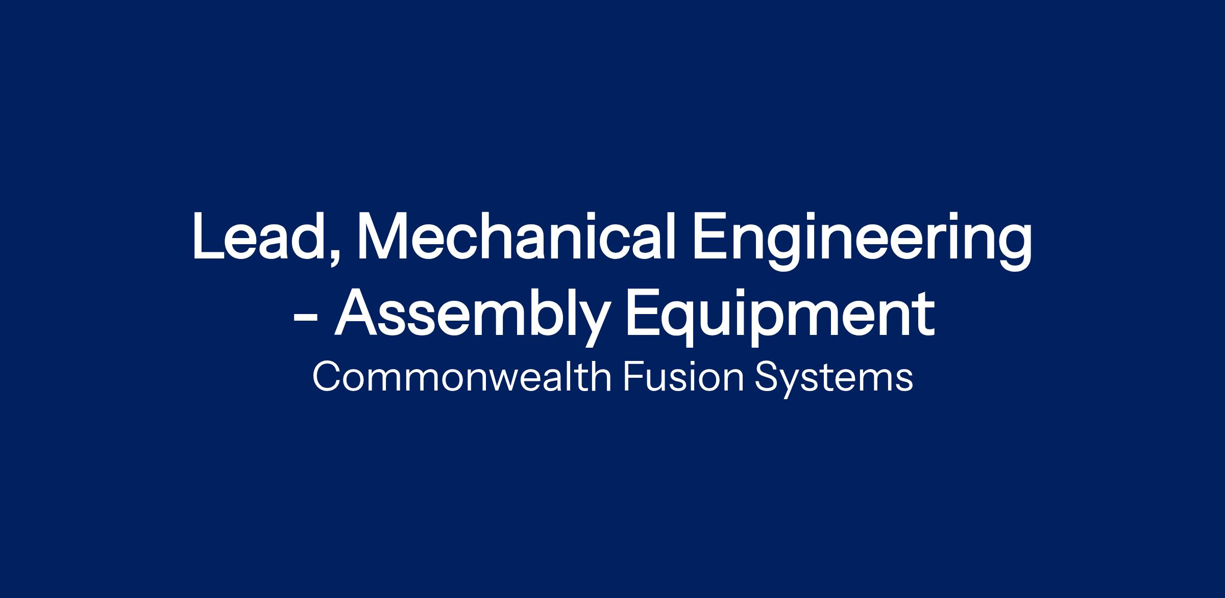 Lead, Mechanical Engineering - Assembly Equipment