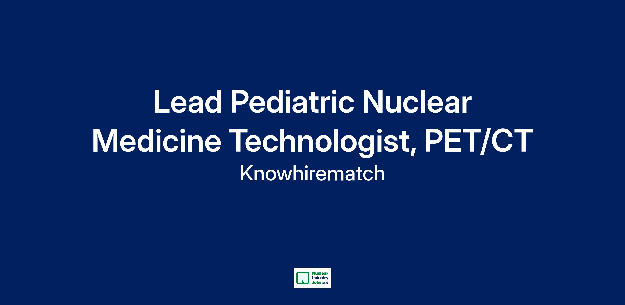 Experience Minimum of 3 years as a Nuclear Medicine Technologist. Significant Pediatrics experience in a hospital setting is highly needed!