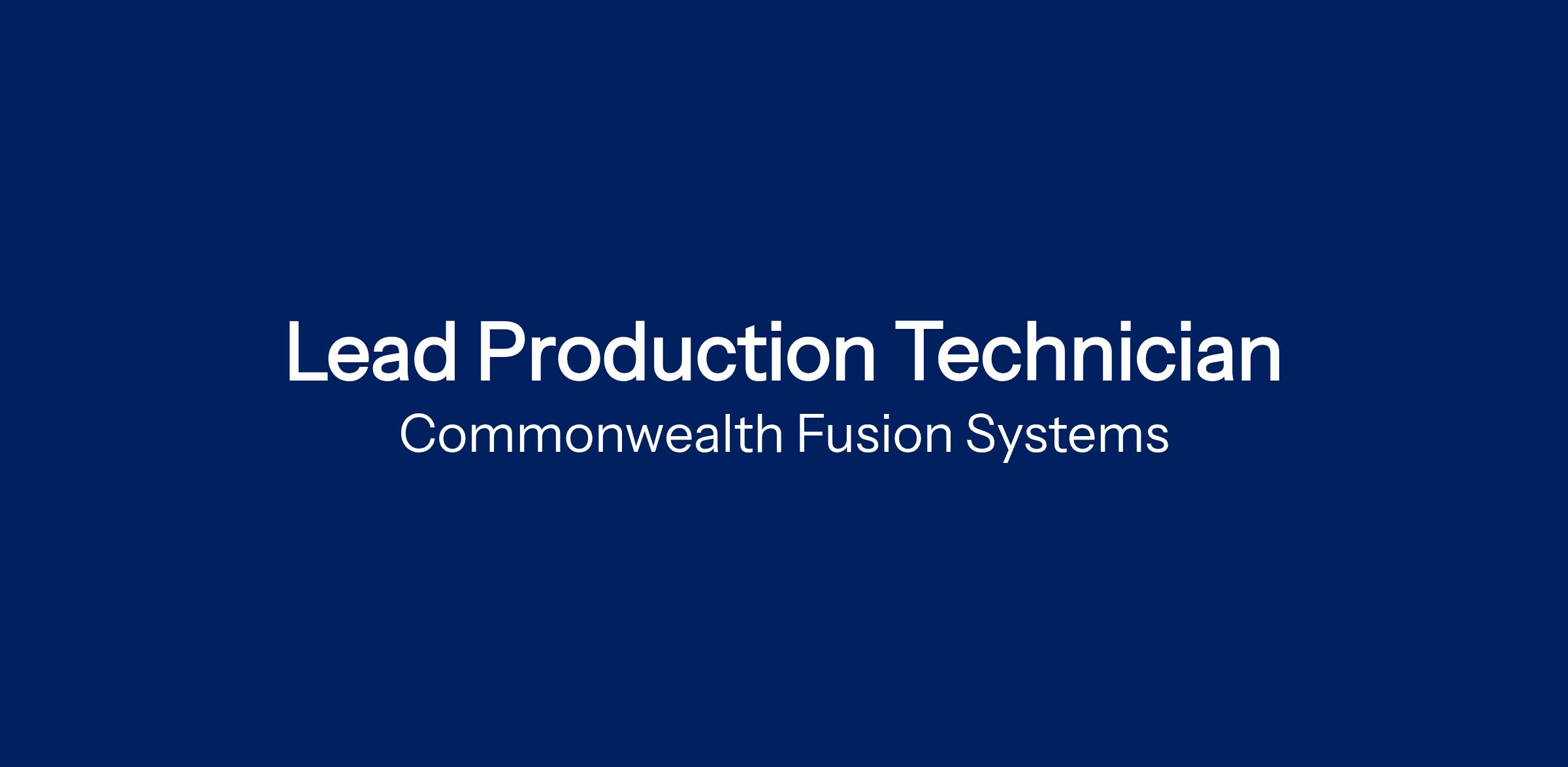 The Lead Production Technician at Commonwealth Fusion Systems is responsible for leading a fast-paced and agile team building the world’s strongest high temperature superconducting magnets and assemblies for integration into CFS fusion devices.  The role is responsible for continuously improving production tasks, maintaining schedules with resourcing, and assuring quality requirements are met per documentation. The technician team is a hands-on build team working with mechanical, electrical, magnetic, cryogenic, pressure, vacuum, and pneumatic systems.