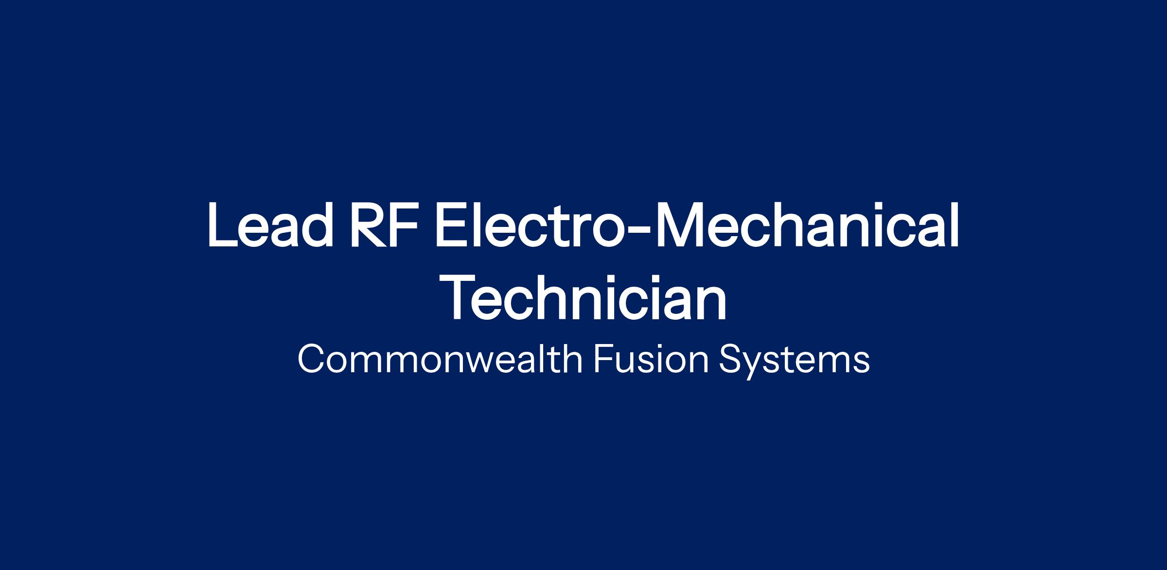 We are seeking a highly motivated Lead RF Electro-Mechanical Technician to join our team of physicists, engineers, and technicians in our core mission: accelerating the development of fusion energy.