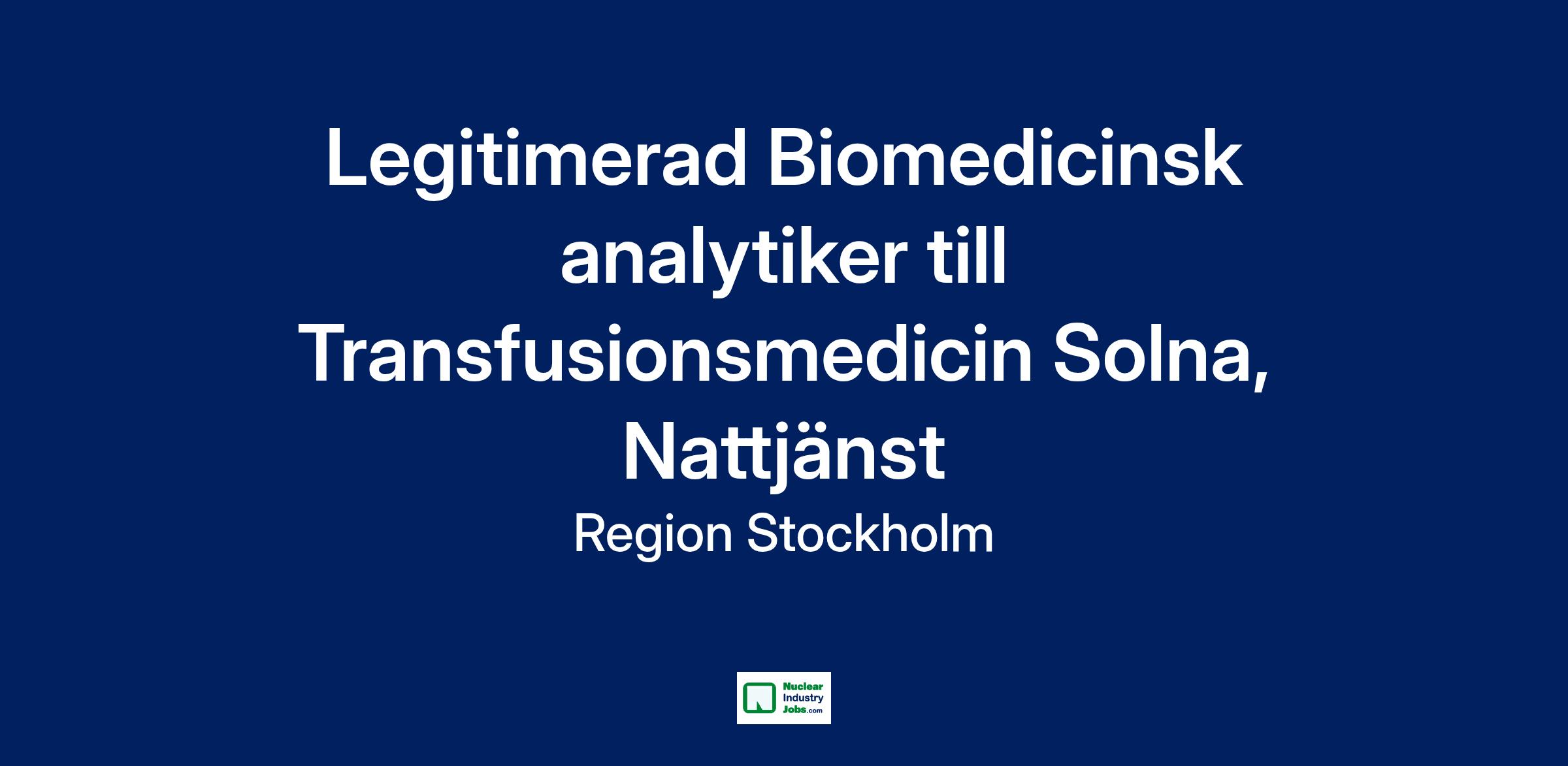 Är du biomedicinsk analytiker med intresse för transfusionsmedicin? Vill du arbeta i en stimulerande och utvecklande miljö där du kan göra skillnad varje dag, även under nattens timmar? Då kan du vara den vi söker till Karolinska Universitetssjukhuset!