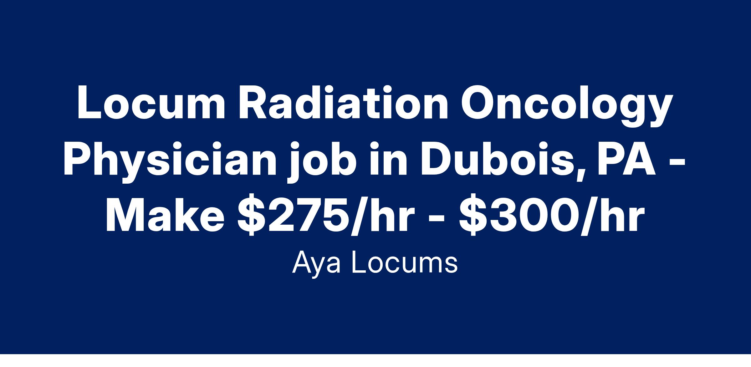 Aya Locums has an immediate opening for a locum Radiation Oncology job in Dubois, PA paying $275/hour - $300/hour.