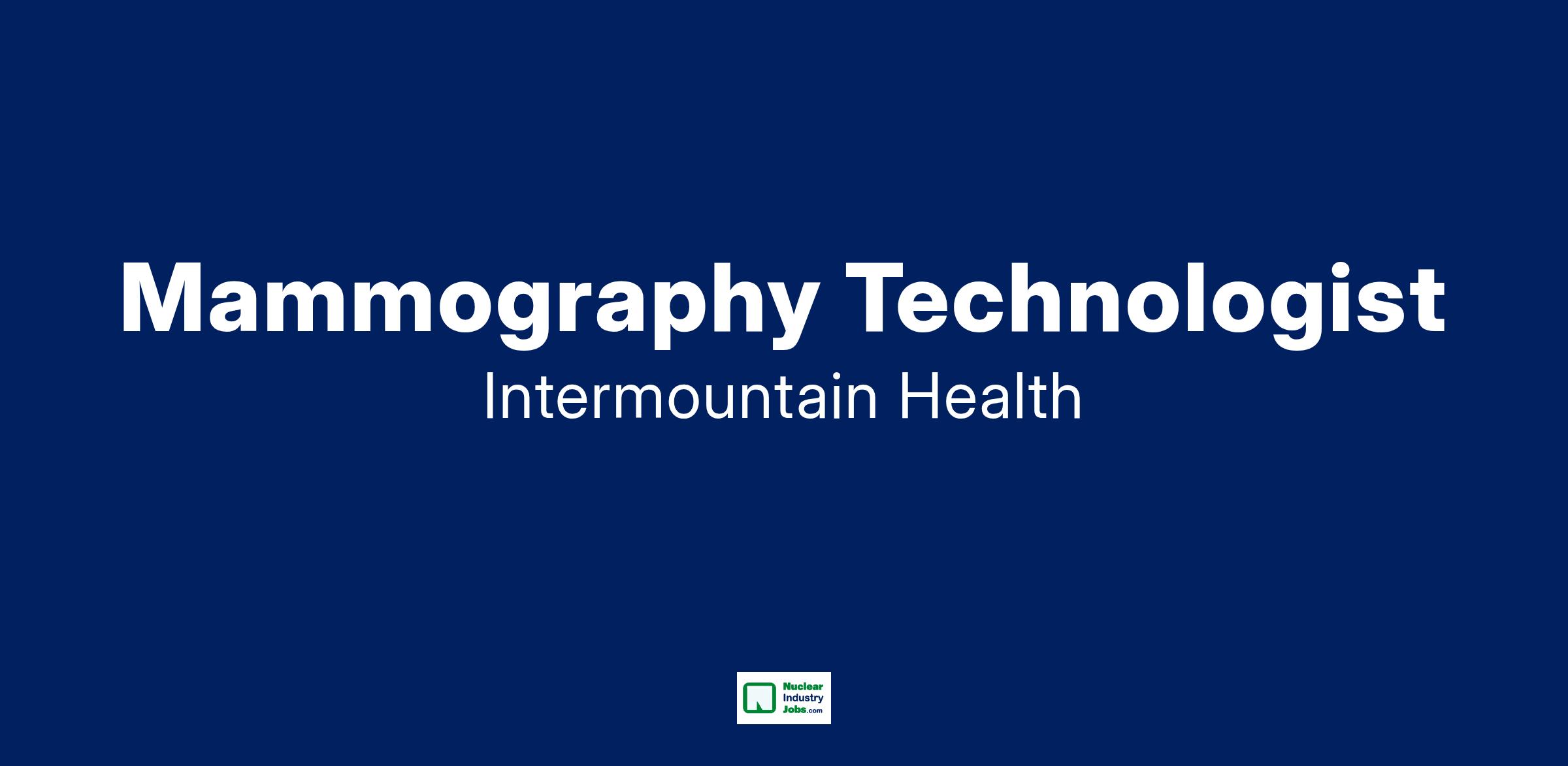 Mammography Technologists at Intermountain Health are committed to providing patient centered care while demonstrating our values of Integrity, Trust, Excellence, Accountability, and Mutual Respect. If you are interested in contributing to our mission of helping people live the healthiest lives possible- come join our team!Posting Specifics :