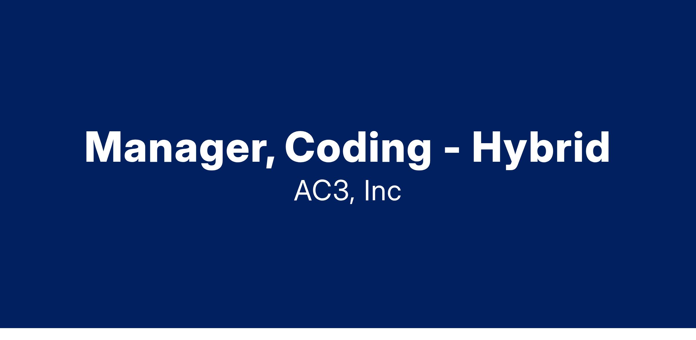 POSITION SUMMARY: AC3 is searching for an experienced Certified Manager of Coding & Compliance for our growing multi-specialty coding services. The manager will be responsible for developing & overseeing a team of coders, conducting billing & coding audits, leading coding education efforts, & identifying process improvement initiatives. They will work cooperatively as a team with revenue cycle, client practices, and management. They will provide courteous and professional assistance with coding questions from physicians, clinical team members, and other departments. The successful candidate for this role must have exceptional communication, organizational skill, and detailed-oriented.