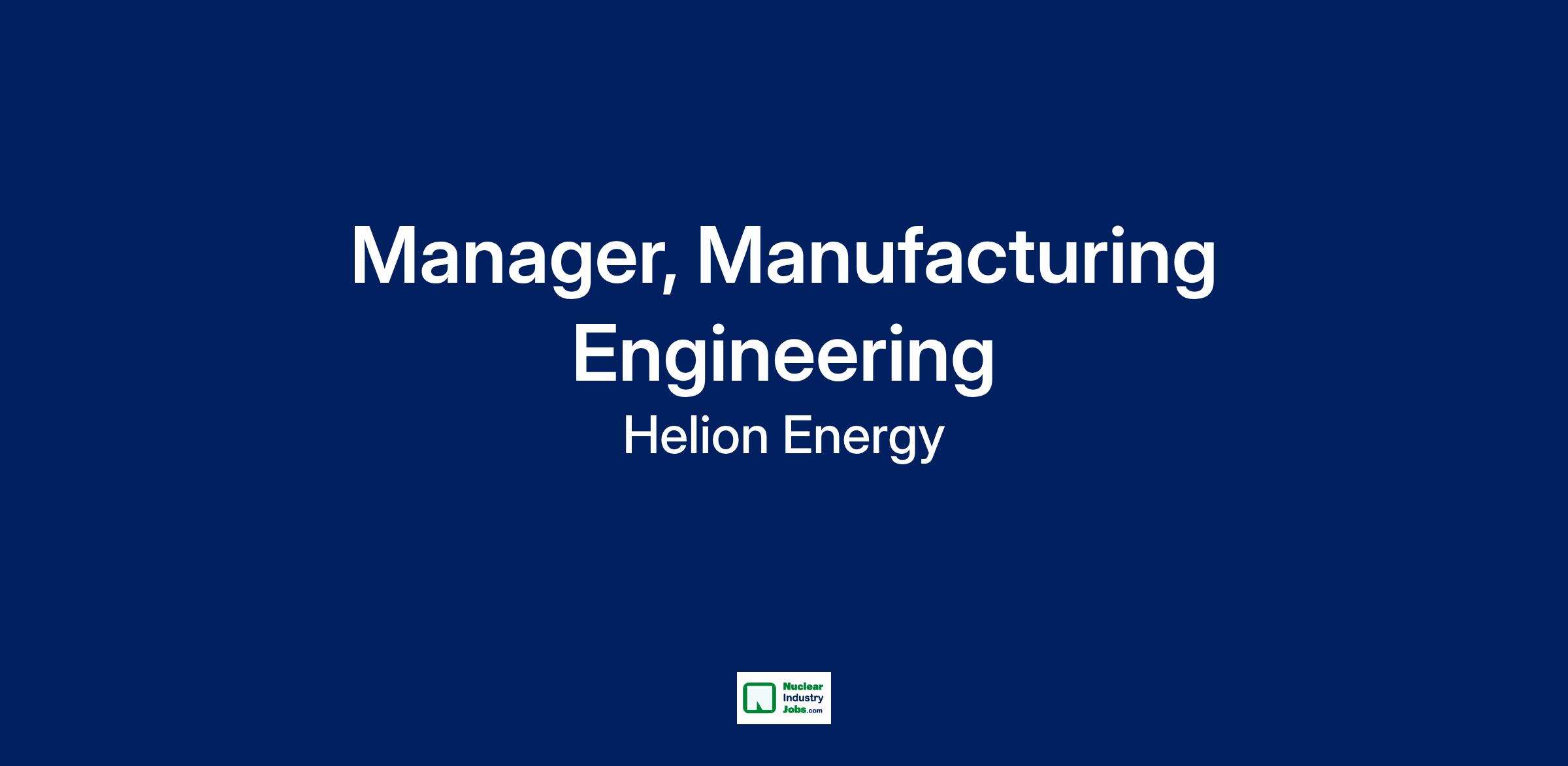 We are hiring a Manager of Manufacturing Engineering to lead the build and testing of prototype designs for Helion's fusion generators. In this role, you will solve a wide range of high-impact challenges that directly affect the performance and scalability of our technology. You'll be responsible for hiring and mentoring top engineering talent, developing innovative manufacturing processes, and accelerating Helion's pace of innovation. Your leadership will shape how we design and operate prototype production lines—setting the standard for delivering clean, low-cost, and reliable electricity to the world. Key responsibilities include building a world-class team, driving complex projects, modeling technical excellence, and establishing best practices in production. This is an onsite role reporting to the Director of Capacitor Manufacturing at our Everett, WA office.