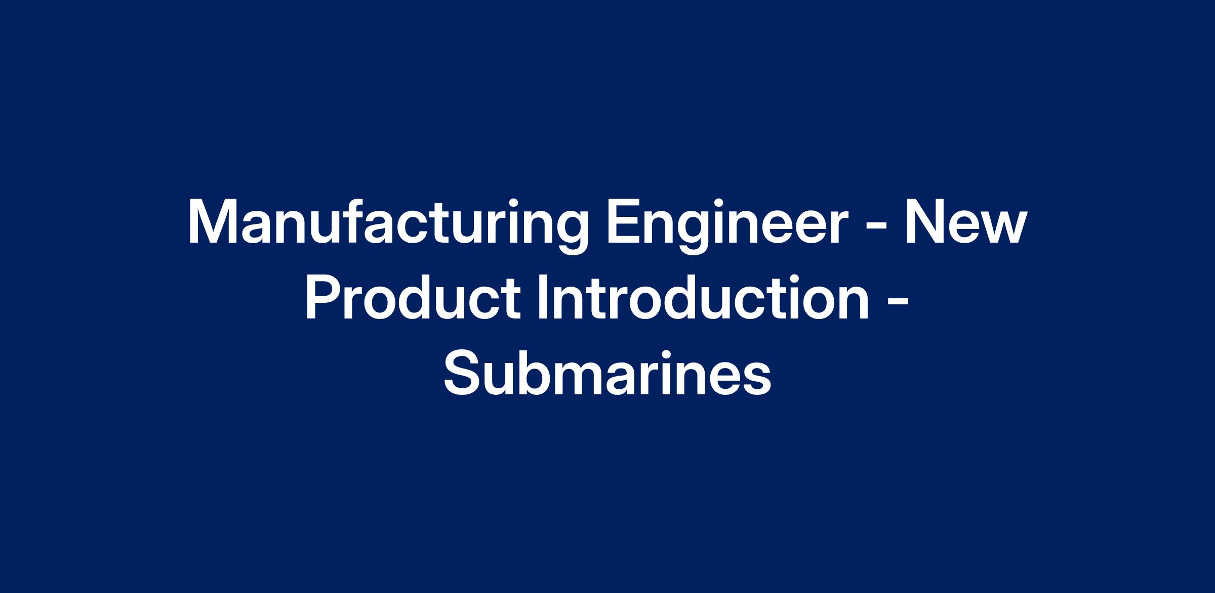 Manufacturing Engineer - New Product Introduction - Submarines