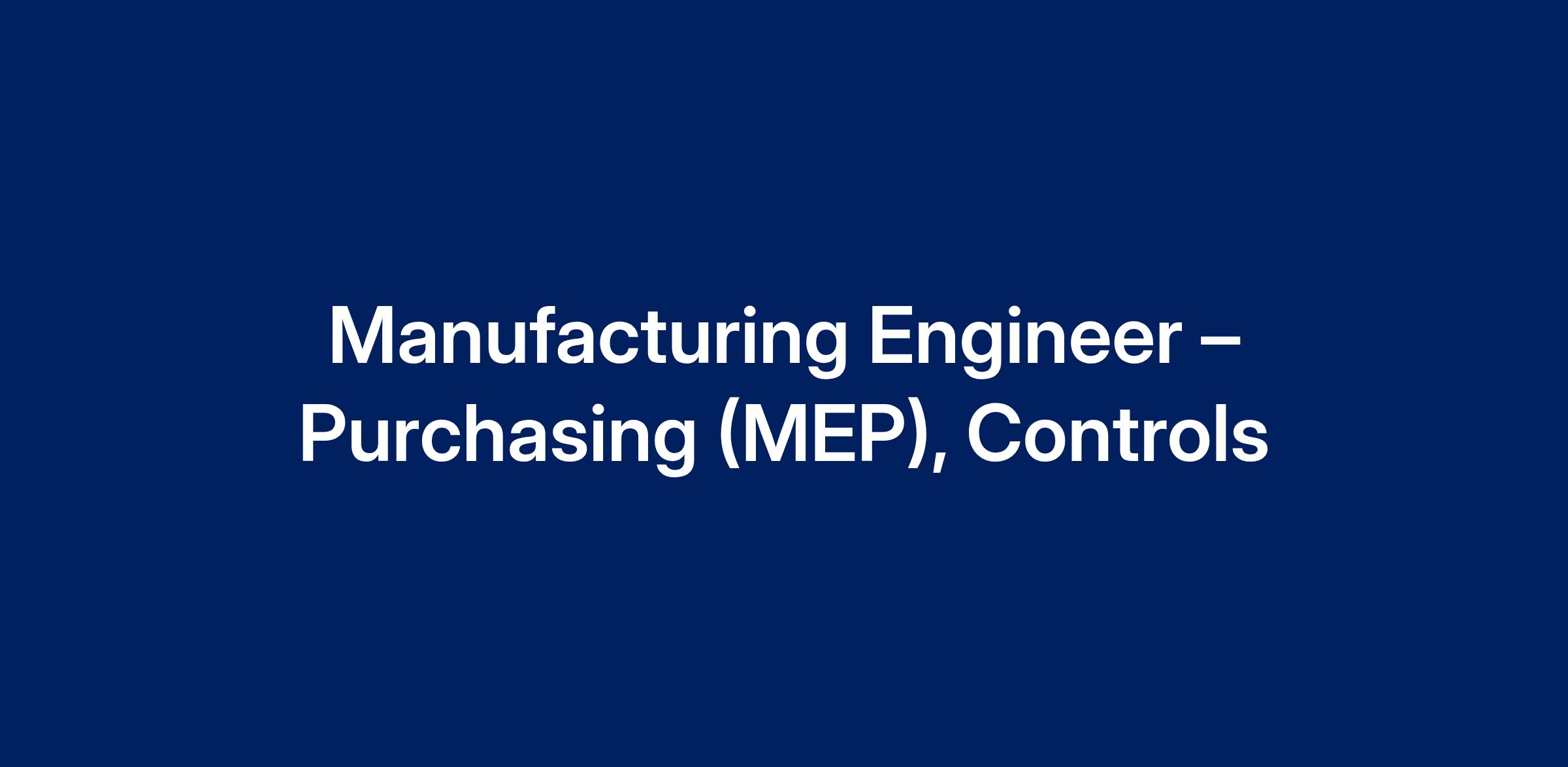 Job Title: Manufacturing Engineer – Purchasing (MEP), Controls