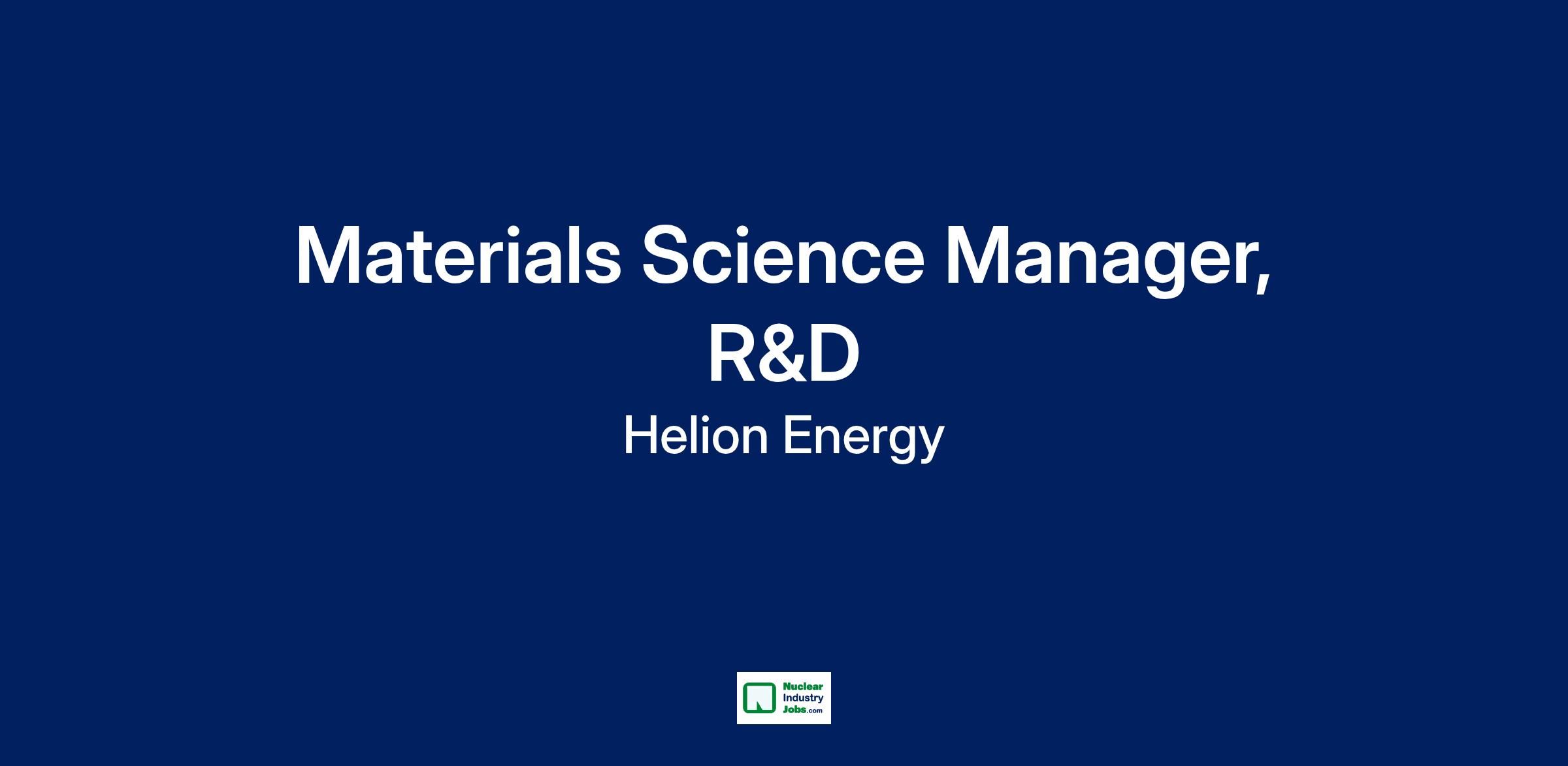 You will lead Helion’s R&D Materials Science team with a strong focus on developing and deploying critical capabilities that enable the design, testing, and monitoring of materials for extreme environments. You will oversee the delivery of key R&D tools and guide a team of subject matter experts to meet Helion’s materials innovation goals. This is an onsite role that reports directly to Director of Materials Science at our Everett, WA office.