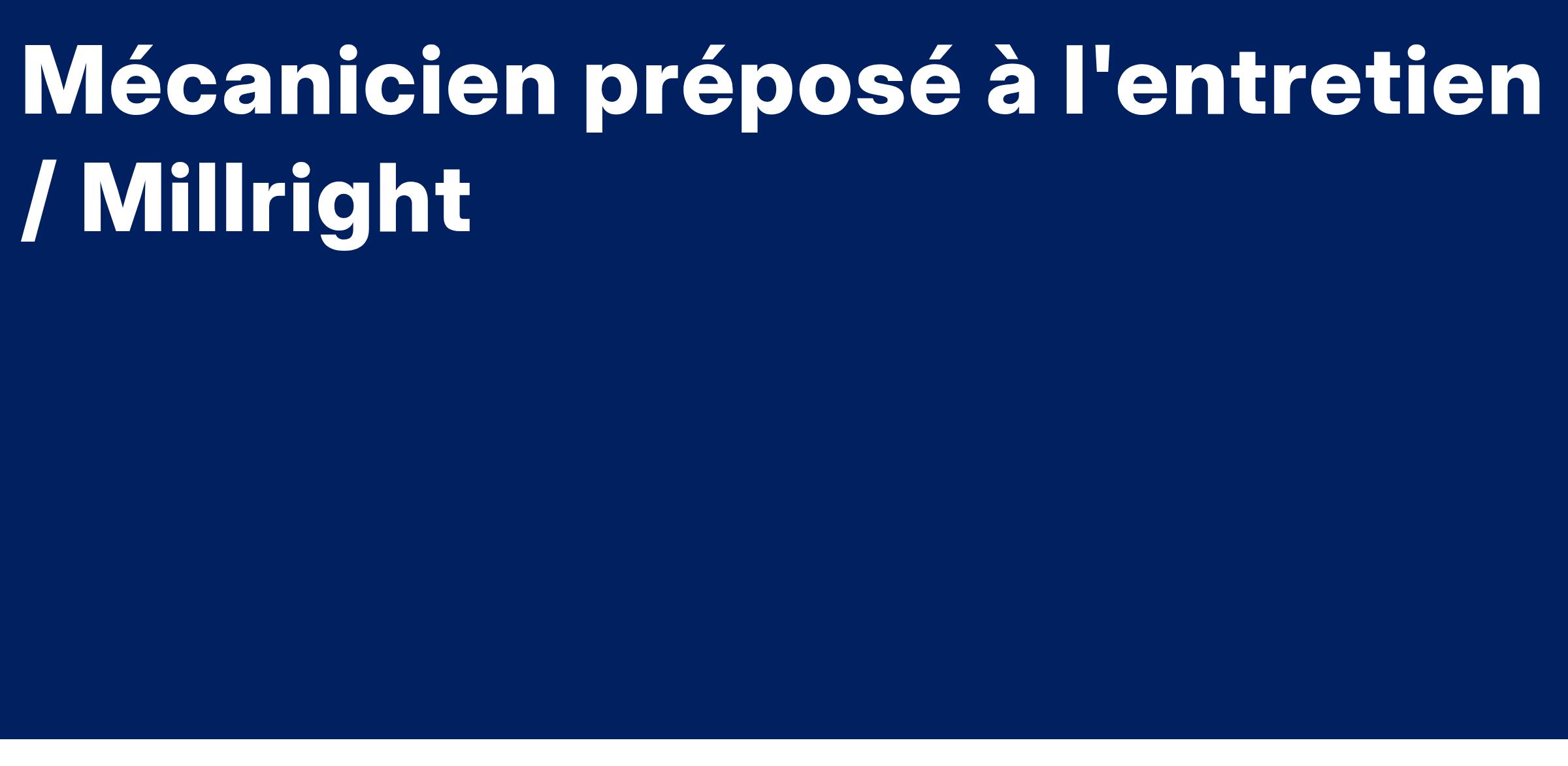 Est un employé qui sera responsable de l'installation, la réparation et/ou de la modification ainsi que de l'entretien des machines tel qu'exigé par la nature des opérations de la Compagnie. Il doit s'assurer du bon fonctionnement des machines et de l'outillage, aux moyens de lubrification, inspection des filtres, changement d'huile et de dissolvants et nettoyage des dépôts et bourbes, et ce, de façon régulière. Il doit aussi transporter les matériaux ou pièces à travers l'usine selon les instructions. De plus, il peut effectuer la manutention des matériaux et de l'équipement mobile dans l'accomplissement de ses fonctions attribuées à son occupation y compris celles pour lesquelles il doit être qualifié.