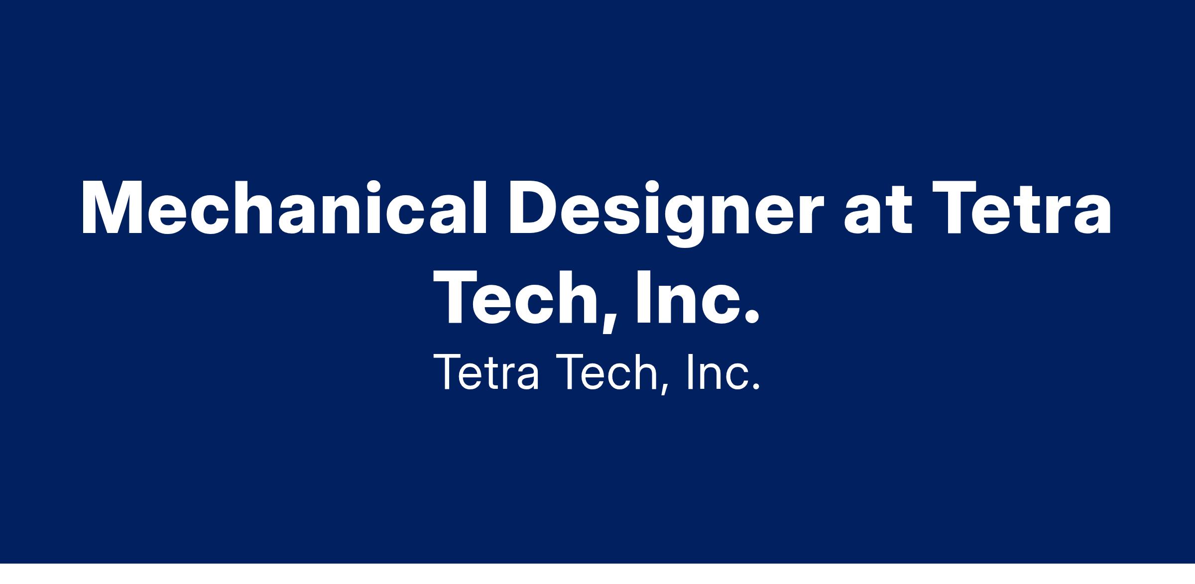 Discover your full potential. At Tetra Tech, we are collaborating with industry-leading experts for a sustainable future for our world. We combine consulting and engineering with advanced analytics and technology to solve the worldโs most complex challenges. Our innovation hubs across the globe will enable you to share ideas and best practices while growing your professional network. Wherever you are in your career journey, you will benefit from working with world-class engineers, scientists, and technical specialists.