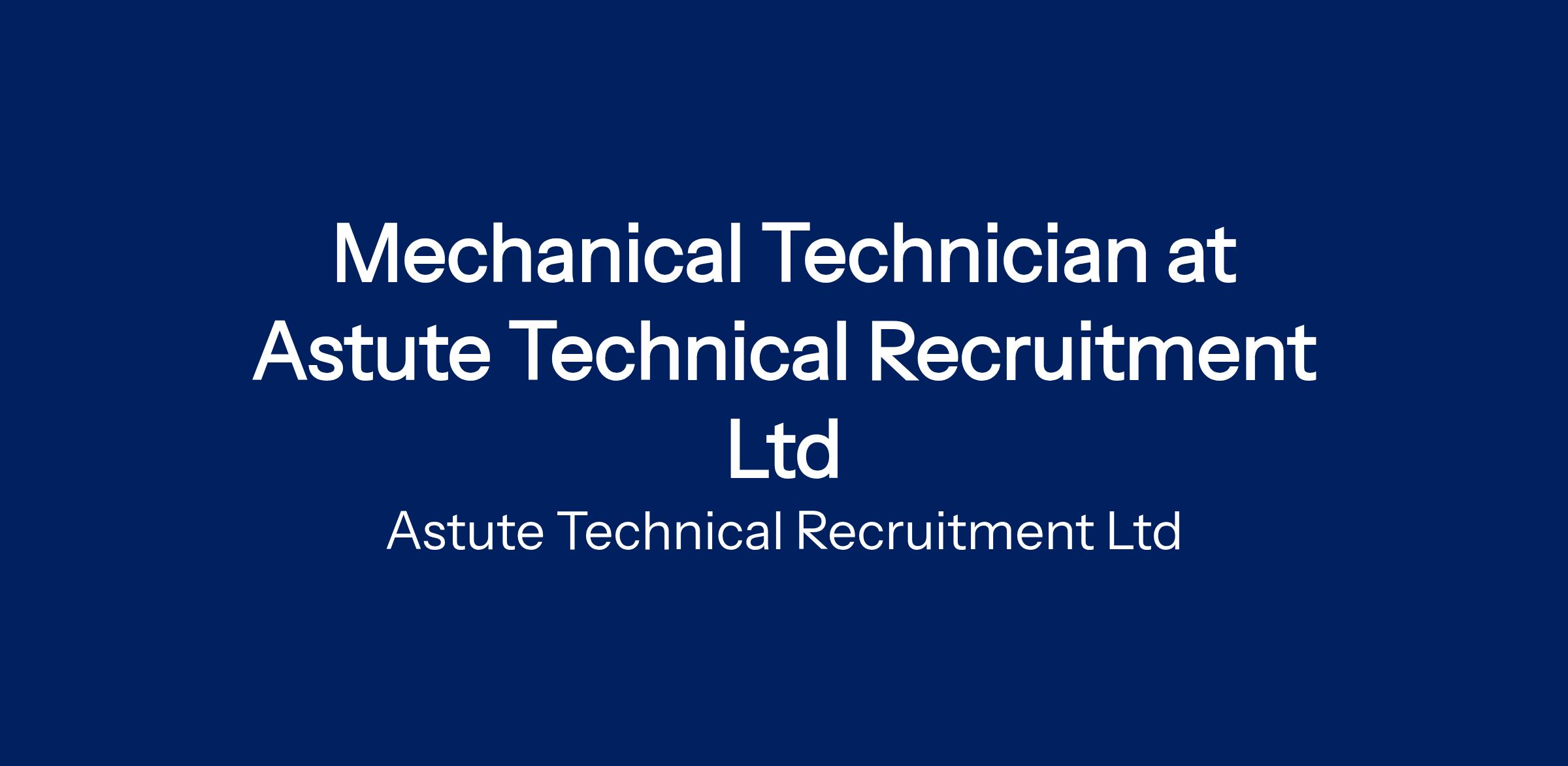 Astute's Power Team are working with a large Biomass facility located in Yorkshire and are recruiting for a Mechanical Technician to join their Maintenance Department.