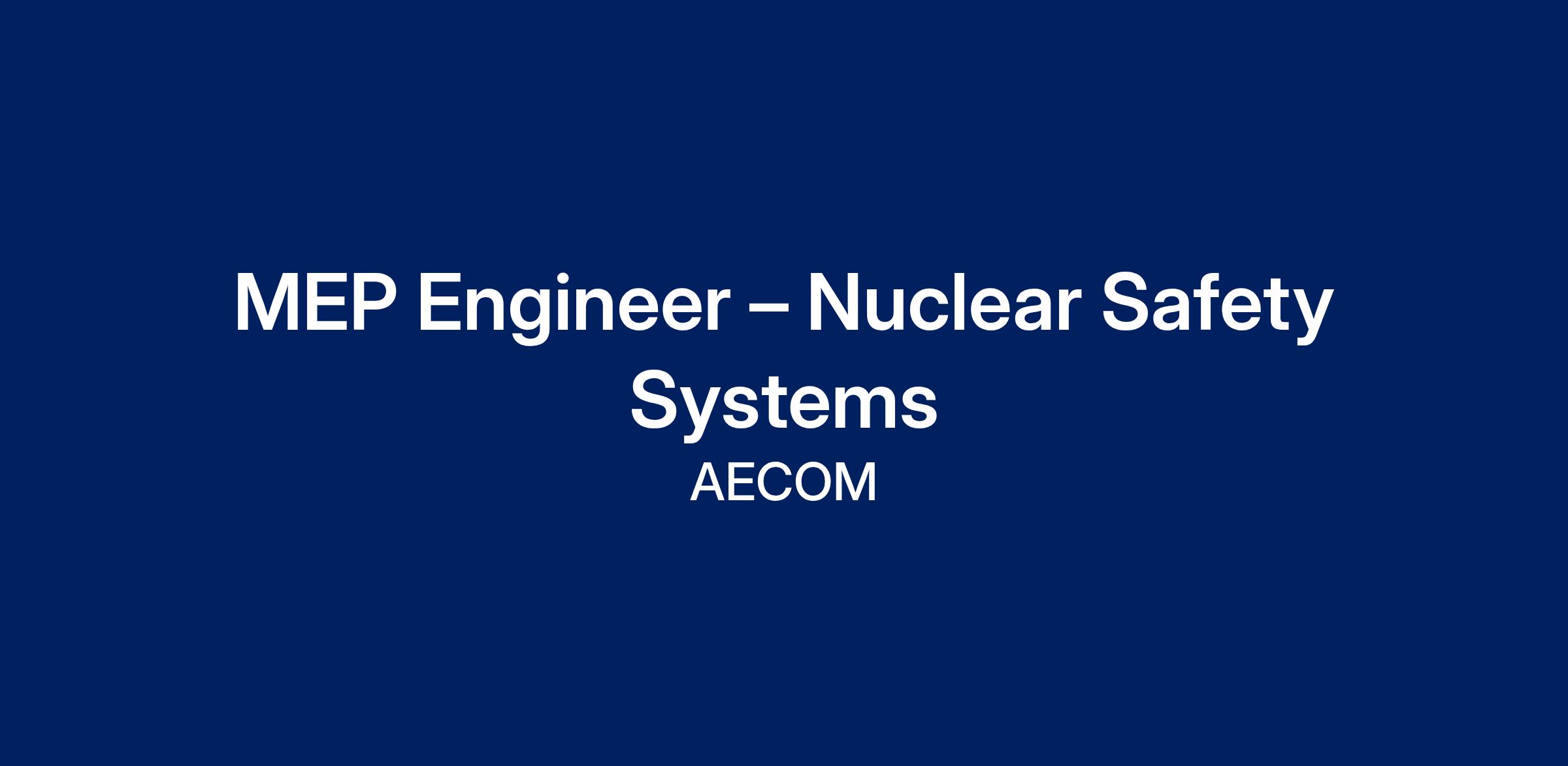 MEP Engineer – Nuclear Safety Systems