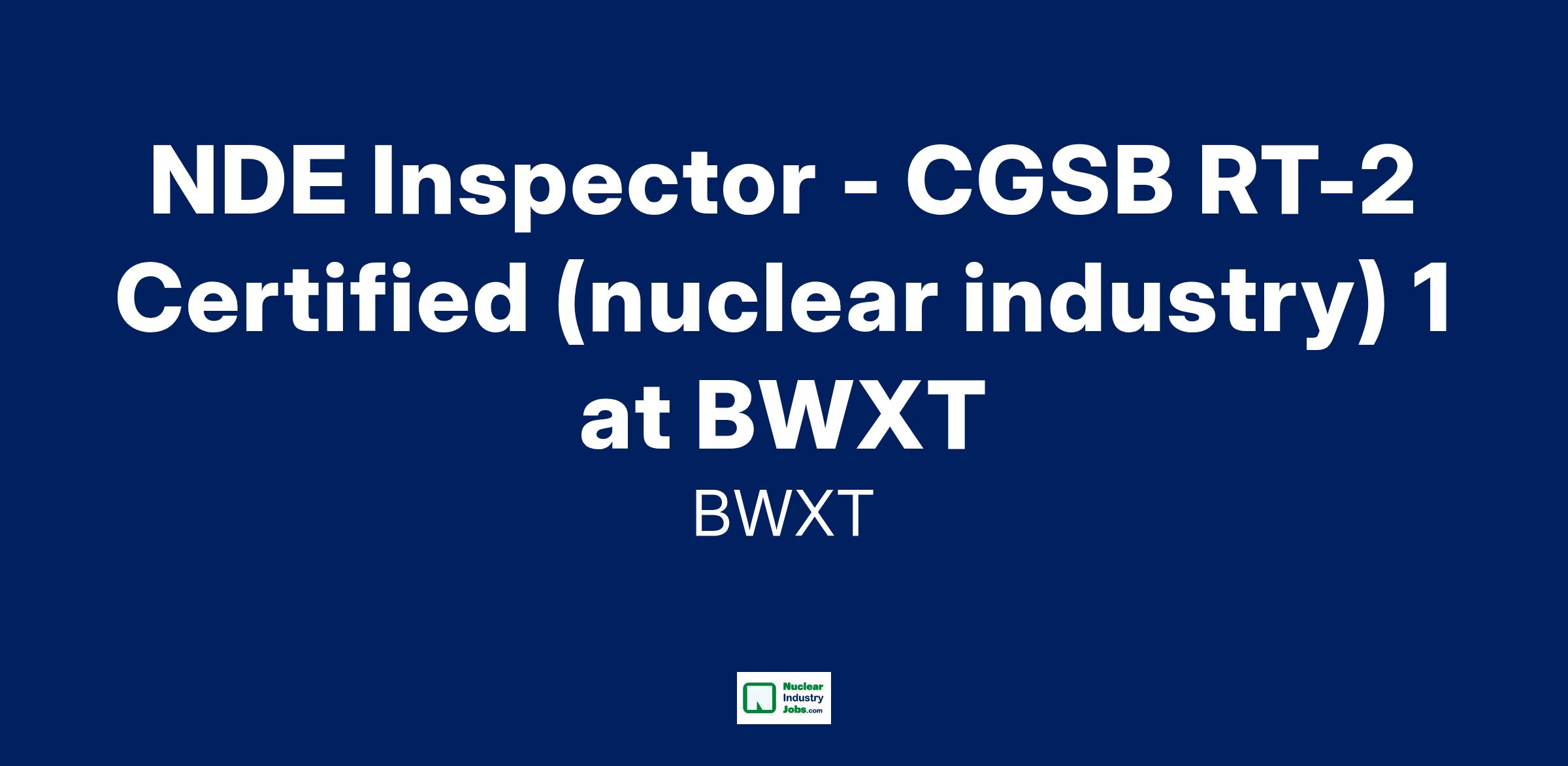 NDE Inspector - CGSB RT-2 Certified (nuclear industry)