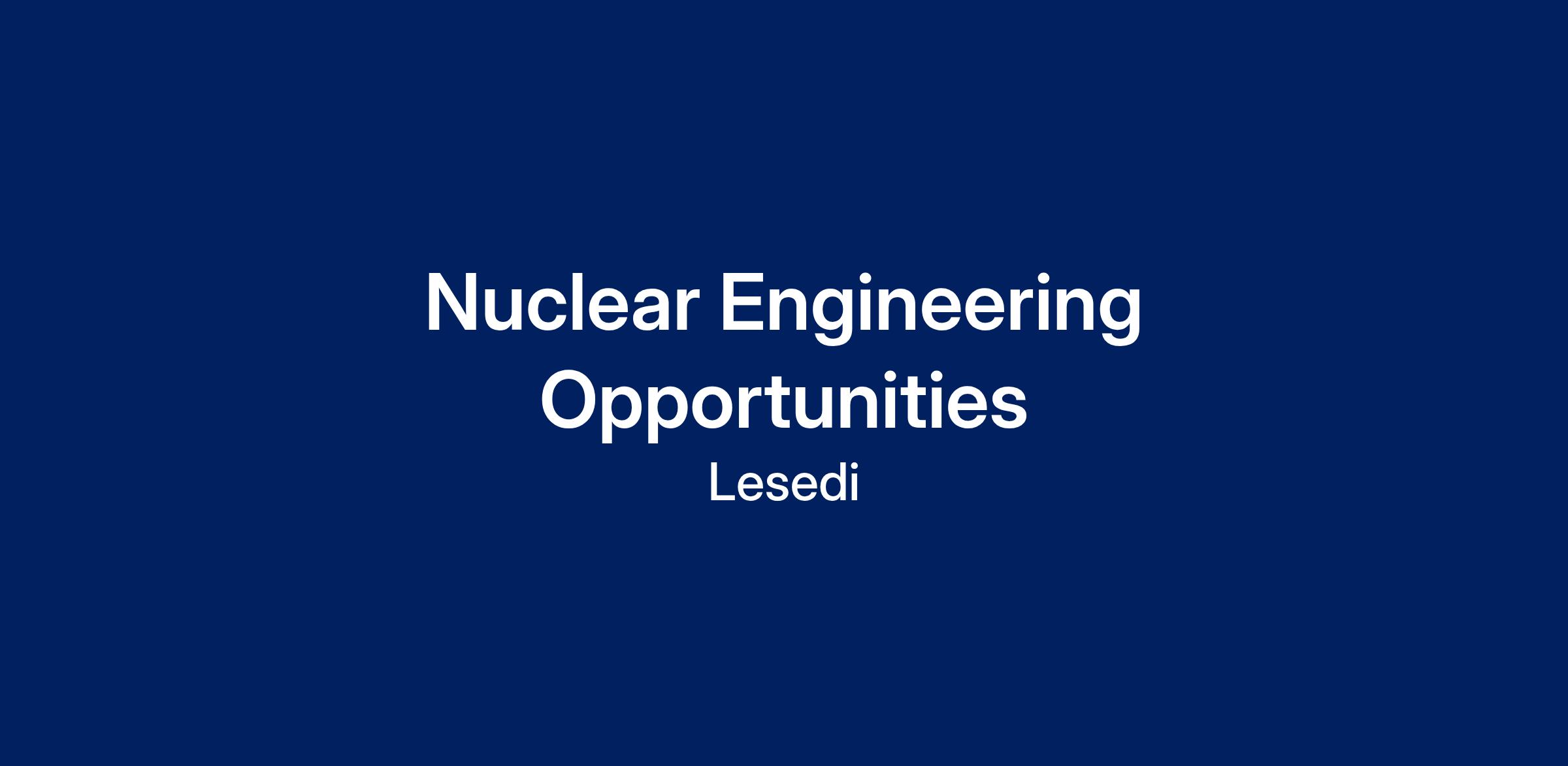Join our team as we expand our nuclear engineering capability. Lesedi is an established nuclear EPC company with over 40 years of involvement in the nuclear industry. With the global revival in this exciting technology, we need talented engineers to join our nuclear team.