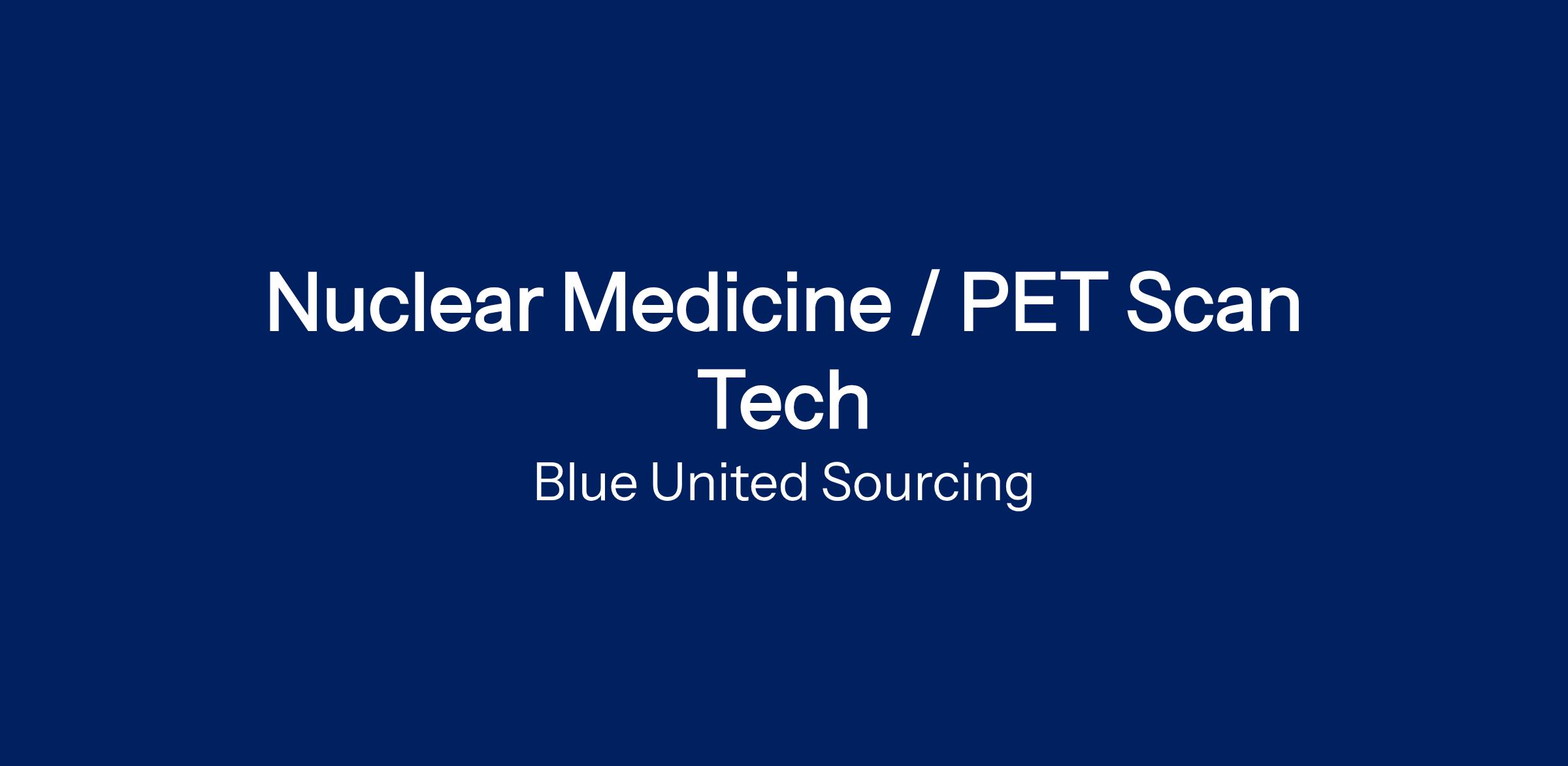 Blue United Sourcing is seeking two experienced Nuclear Medicine / PET Scan Technicians for a 13-week contract assignment in a hospital setting in Oneida, New York.