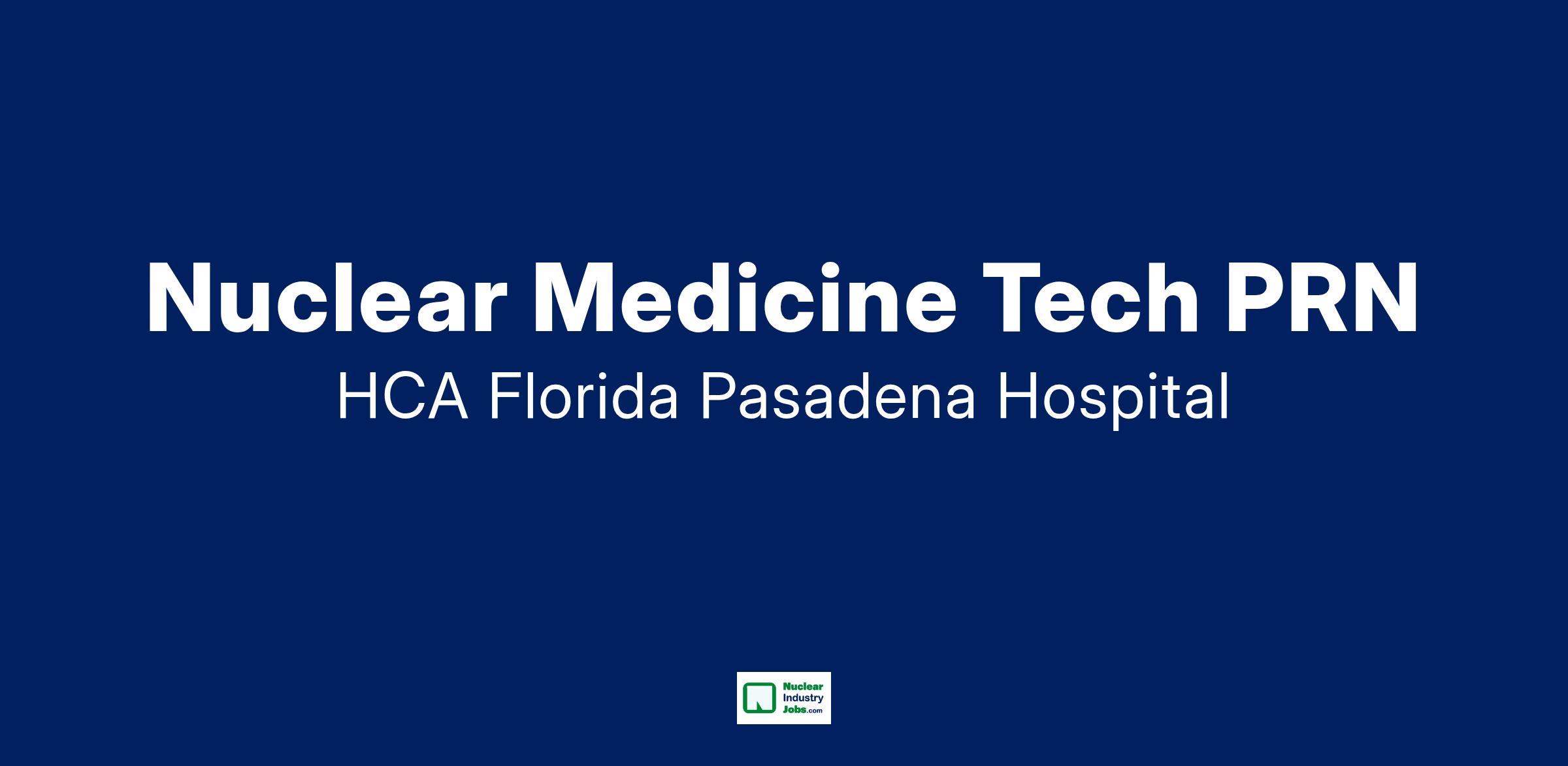 IntroductionAre you passionate about the patient experience? At HCA Healthcare, we are committed to caring for patients with purpose and integrity. We care like family! Jump-start your career as a(an) Nuclear Medicine Tech PRN today with HCA Florida Pasadena Hospital.