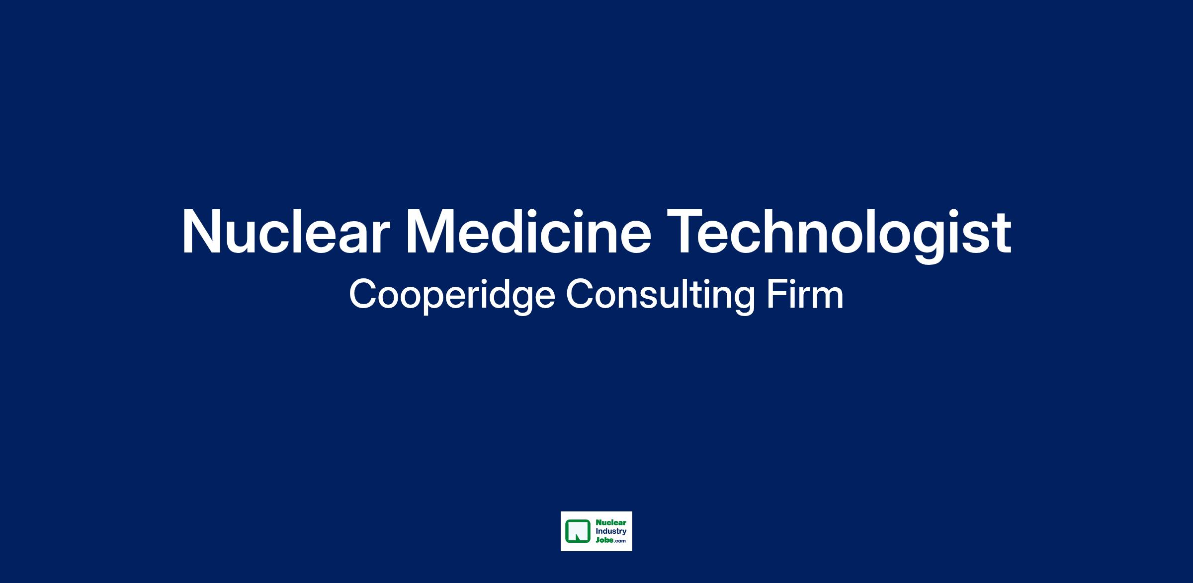 Cooperidge Consulting Firm is seeking a Nuclear Medicine Technologist for a top Healthcare client.