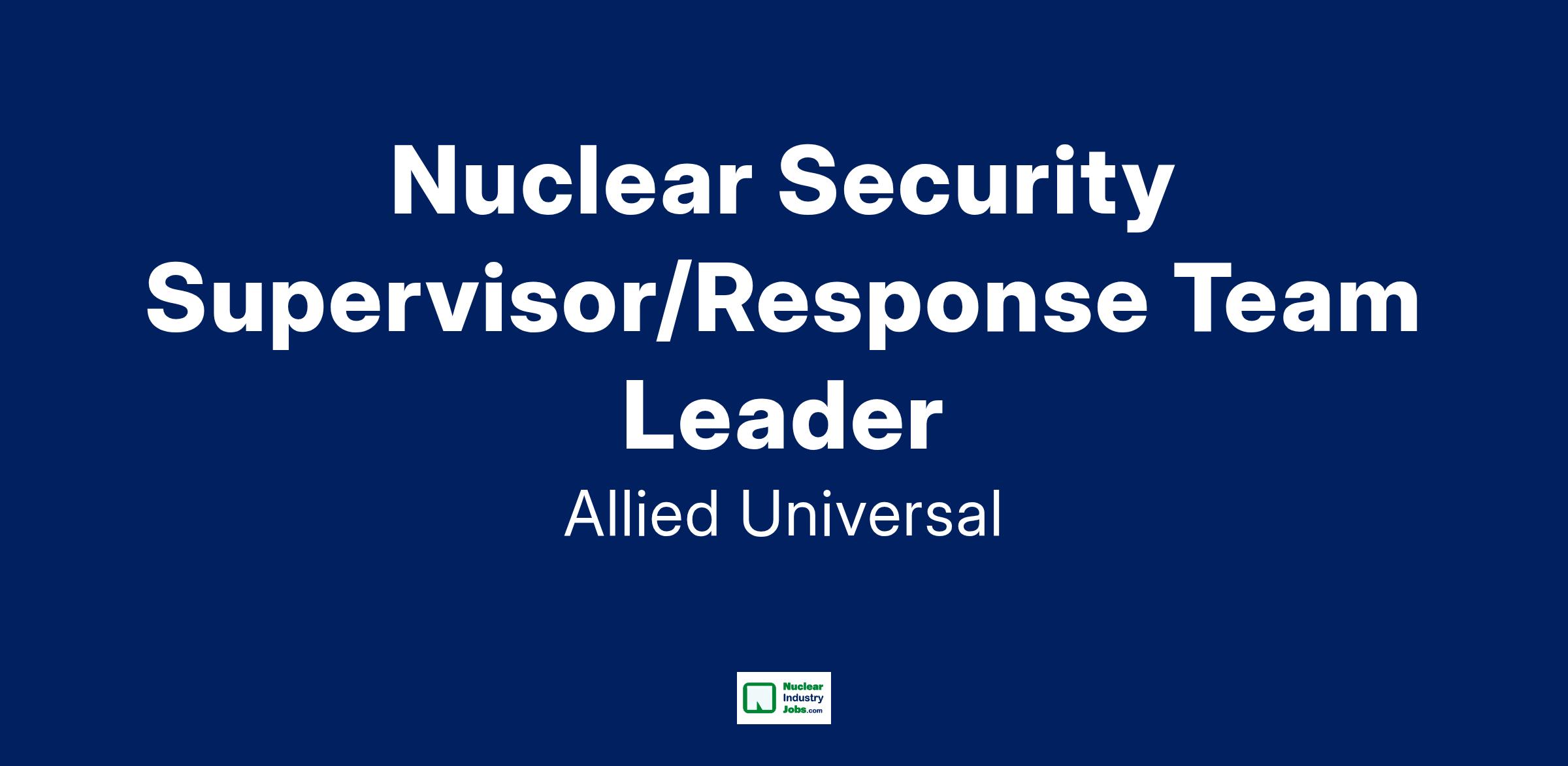 Allied Universal has security jobs and are seeking to fill the position for a Nuclear Security Supervisor (SS)/Response Team Leader (RTL). The Nuclear Security Supervisor is responsible for supervising and evaluating the conduct and performance of the Security Leads and/or Security Officers in his/her assigned unit or team. He or she is qualified to perform the duties of the Central Alarm Station (CAS) or Secondary Alarm Station (SAS) operator. The Security Supervisor is responsible for ensuring compliance with all applicable federal and state regulations and facility and company policies, procedures, and/or guidelines. The Security Supervisor performs post inspections, assigns work to employees, issues weapons and equipment, and handles employee issues and concerns.