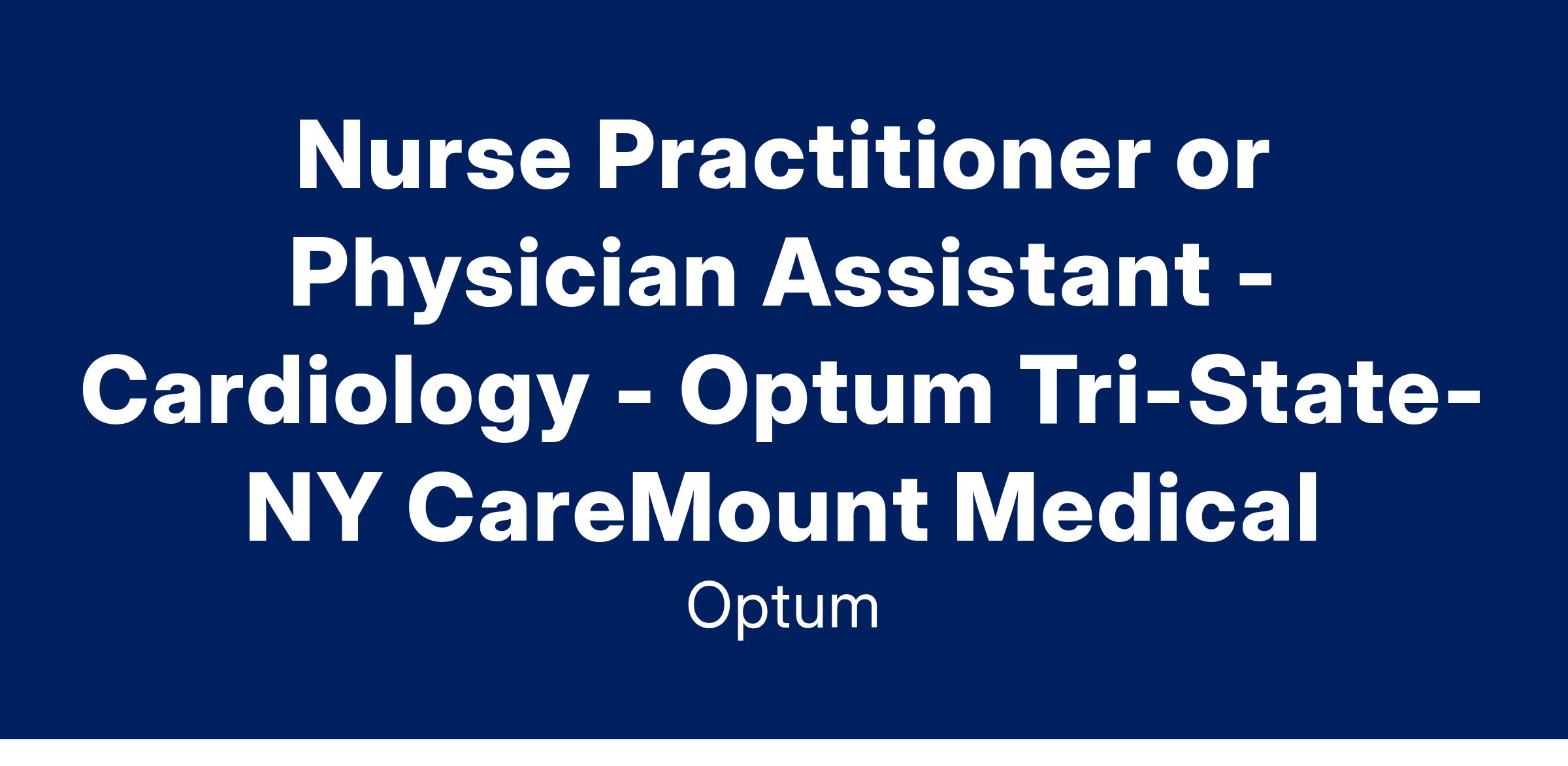 Nurse Practitioner or Physician Assistant - Cardiology - Optum Tri-State- NY CareMount Medical
