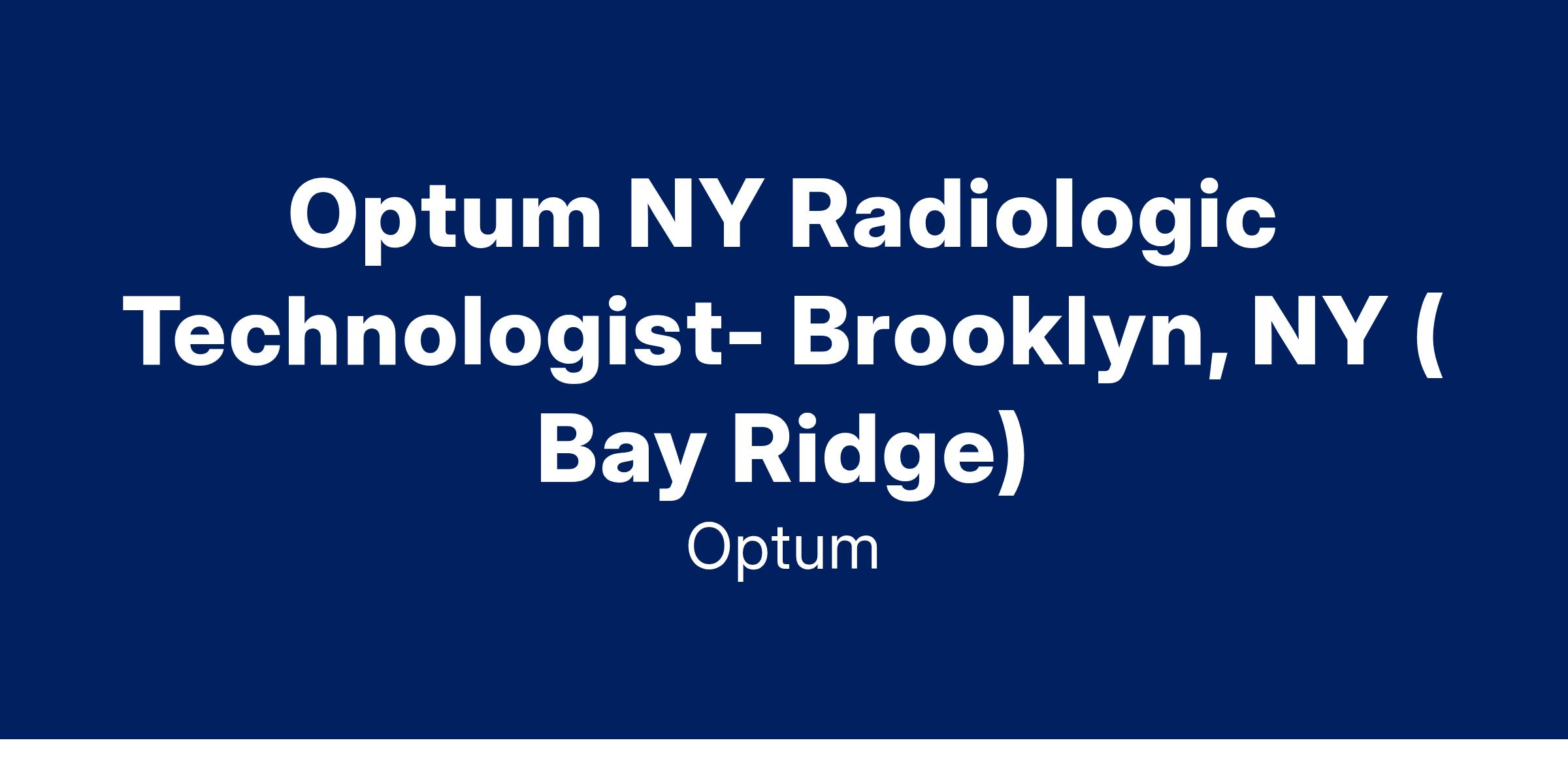 $5,000 Sign-on Bonus for External Candidates Optum New York, (formerly Optum Tri-State NY) is seeking a Radiologic Technologist to join our team in Brooklyn, NY. Optum is a clinician-led care organization that is changing the way clinicians work and live. As a member of the Optum Care Delivery team, you'll be an integral part of our vision to make healthcare better for everyone. At Optum, you'll have the clinical resources, data and support of a global organization behind you so you can help your patients live healthier lives. Here, you'll work alongside talented peers in a collaborative environment that is guided by diversity and inclusion while driving towards the Quadruple Aim. We believe you deserve an exceptional career, and will empower you to live your best life at work and at home. Experience the fulfillment of advancing the health of your community with the excitement of contributing new practice ideas and initiatives that could help improve care for millions of patients across the country. Because together, we have the power to make health care better for everyone. Join us and discover how rewarding medicine can be while