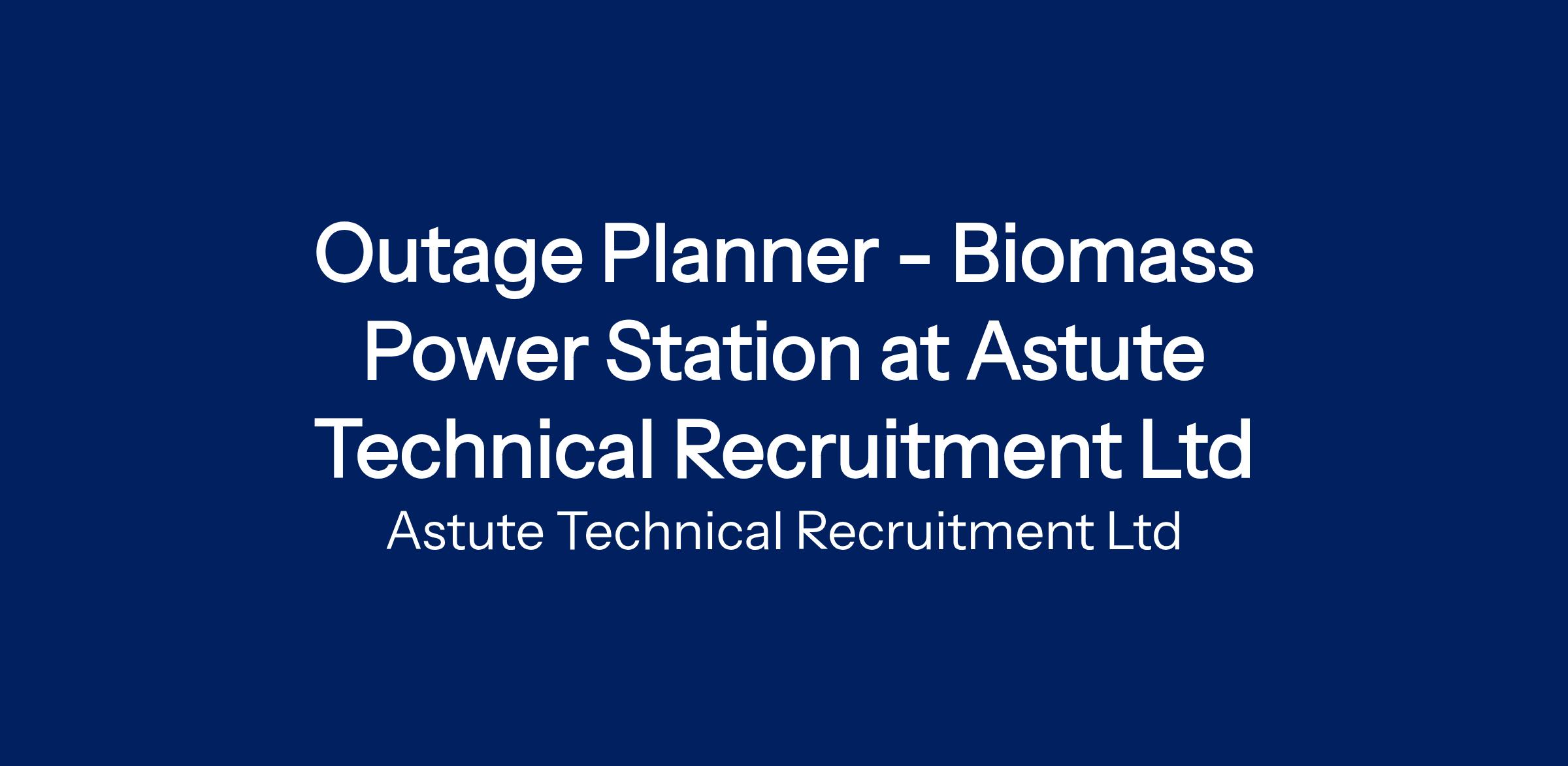 Astutes Power Team are recruiting for an Outage Planner to support a fleet of Biomass and Energy from Waste Power Stations across the United Kingdom.