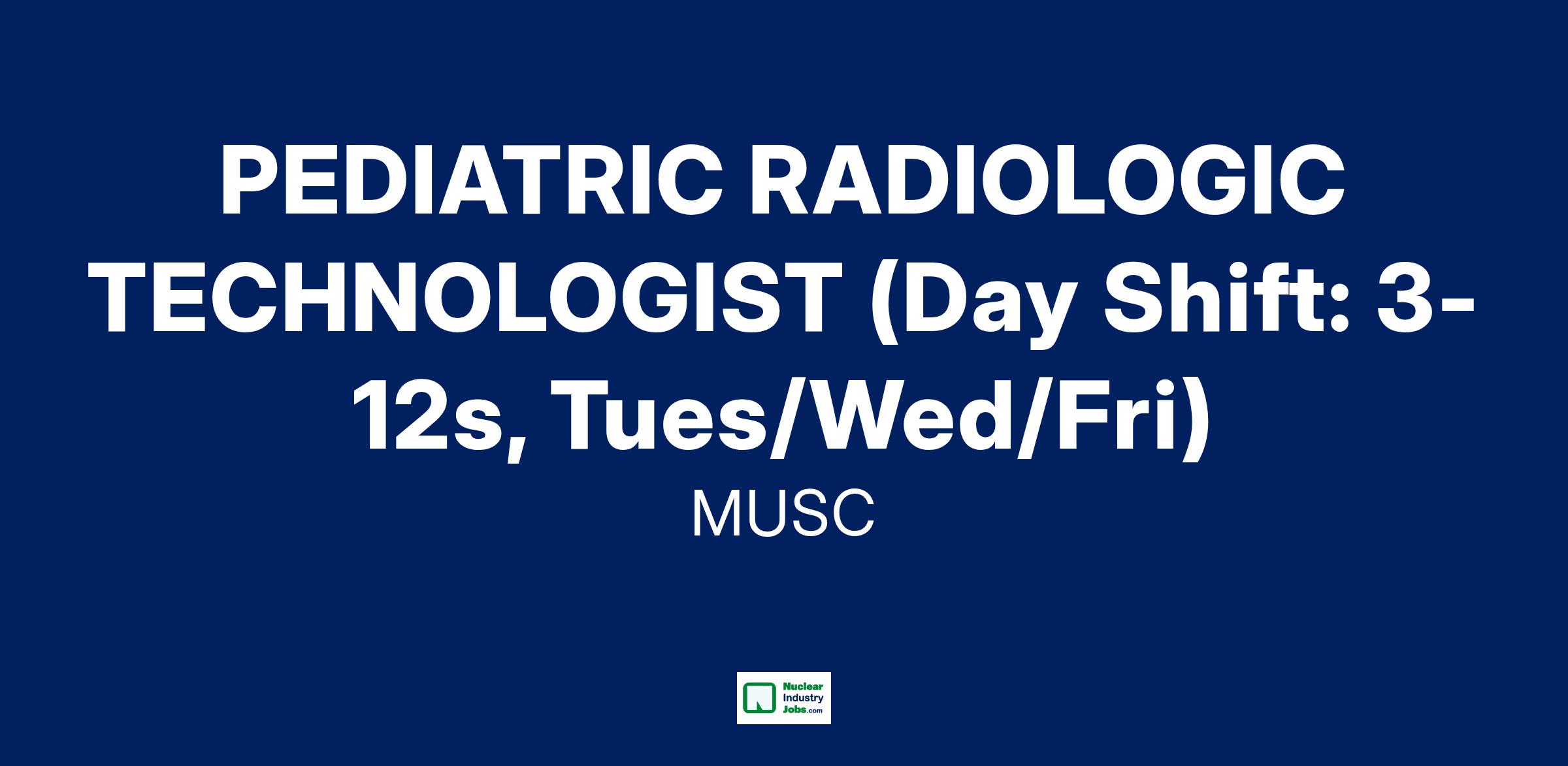 NEW GRADS WELCOME TO APPLY! Performs radiographic procedures at a technical level requiring sound understanding of anatomical positioning and physiology; a high degree of technical competency and with the ability to act with initiative and ingenuity with minimum supervision. Apply ionizing radiation for radiologic diagnosis in pediatric radiology.Additional Job Description
